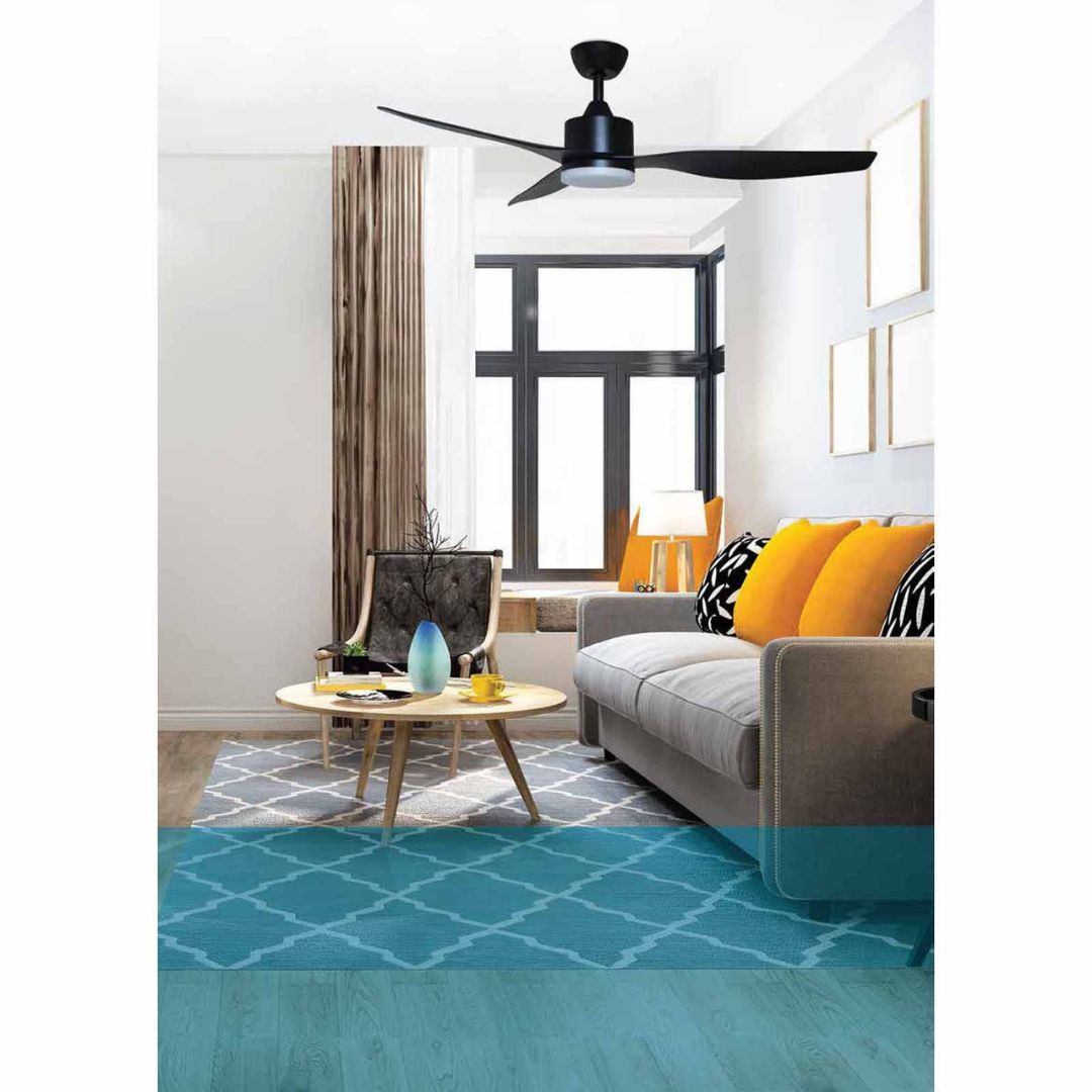 The Fanztec Airmaster 52 inch ceiling fan is suitable for floor to ceiling heights of 3 meters or less. It has three blades, provides excellent air delivery, and is energy efficient.