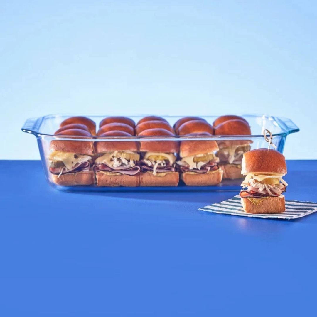 The deeper hold-everything baking dish is here to make and take all your yummy creations to family gatherings, picnics and more. This 6cm tall. Oblong baking dish is up to 50% deeper than than other bakers, this baking dish gives you a 4.7L capacity to make your favorite dish. Transport food safely, easily and at the perfect temperature with this set that pairs our large Pyrex Deep baking dish with a designed-to-fit insulated bag. The dish has a snug-fitting lid to prevent spills, and a hot/cold pack ensures that food arrives ready to enjoy.