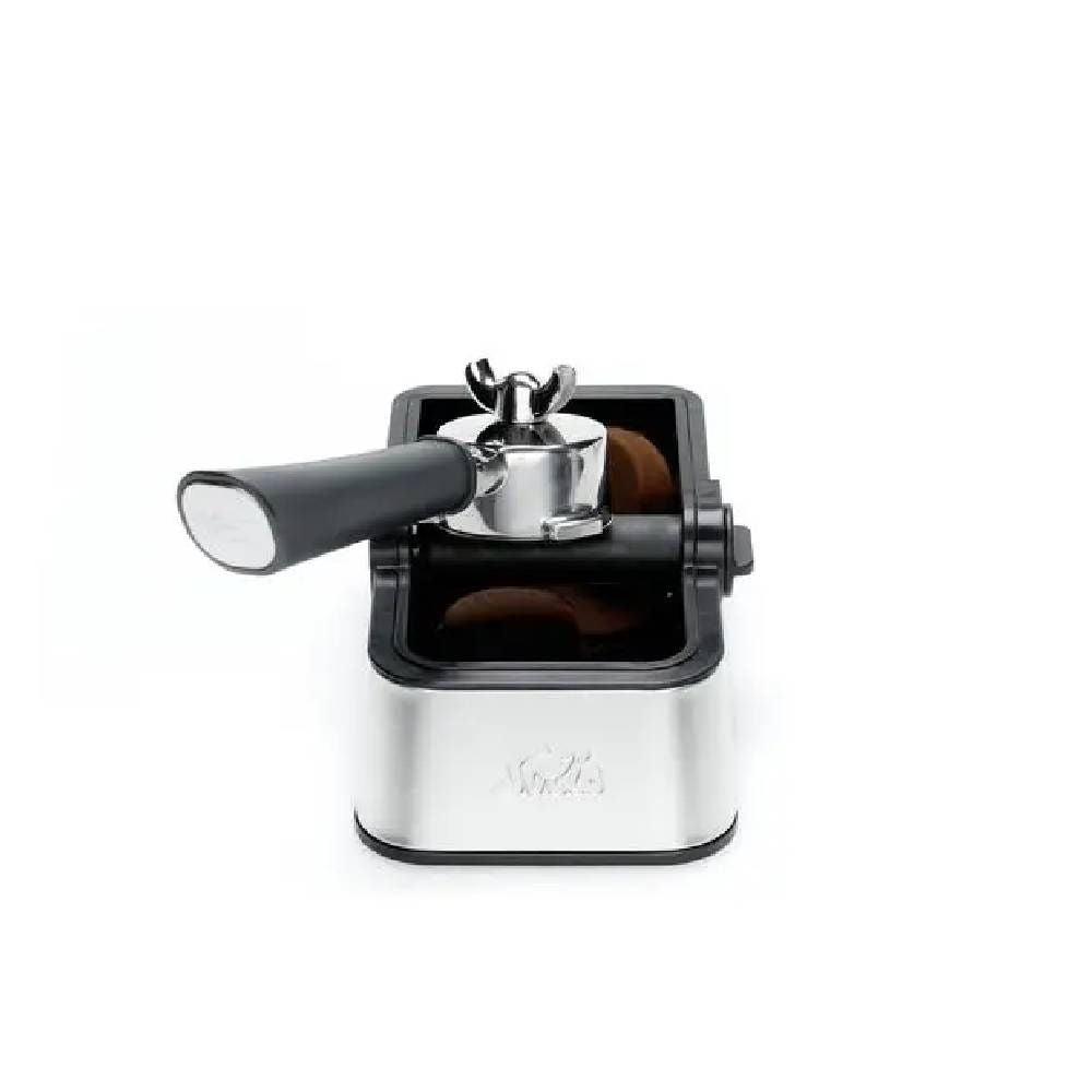 • Horizontal knock support: The cut-out front allows holding the portafilter horizontally when knocking out coffee grounds