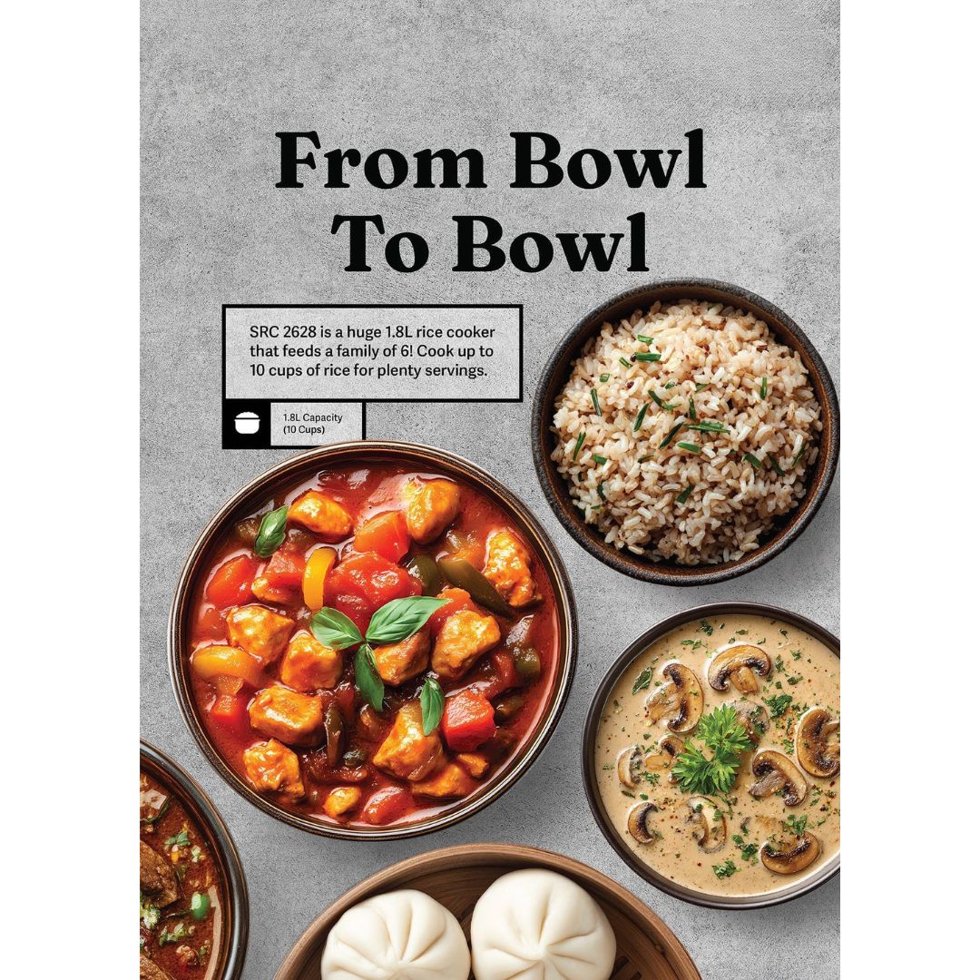 The Sona Digital Rice Cooker offers convenient and versatile cooking with its 9 electronic cooking menus, perfect for preparing a variety of meals with ease. Designed with soft touch controls, a preset timer up to 24 hours, and keep warm and reheat functions, it ensures perfectly cooked rice anytime. The cooker also features an auto clean function and a removable inner cover for easy maintenance, along with an anti-scalding double layer body for added safety. Complete with essential accessories, it is a practical and reliable addition to any kitchen.