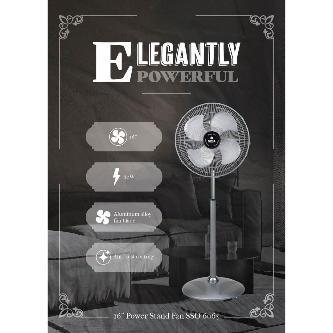 The Sona Oscillator Power Stand Fan is built for powerful, reliable cooling with a durable aluminum alloy blade, wide-angle oscillation, 3-speed control, adjustable tilt, and anti-rust coating—available in multiple power options from 35W to 130W to suit different needs.