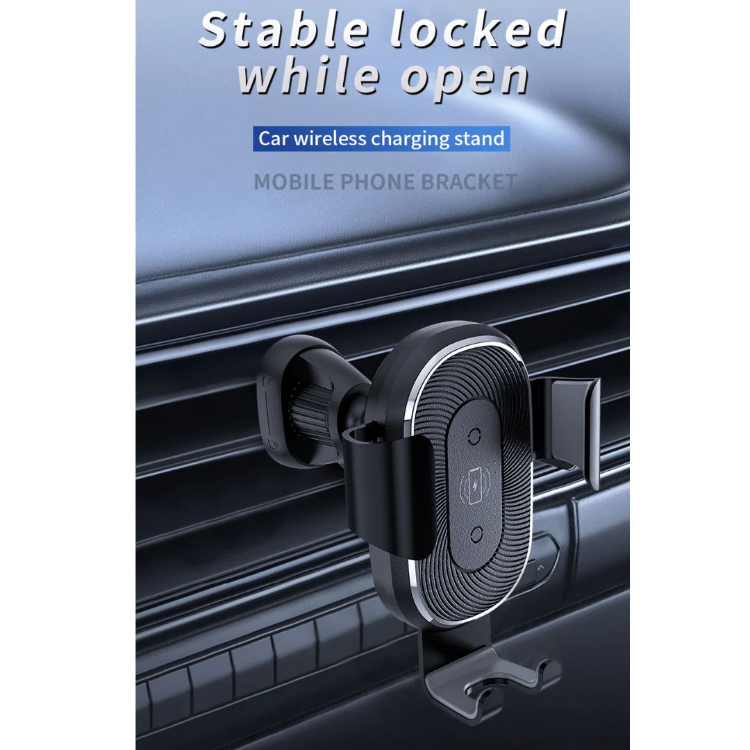 Combines a wireless charger and air vent phone holder for a hands-free, tangle-free driving experience. Suitable for phones from 4 to 6.7 inches.