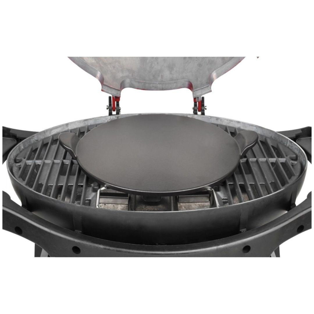 The Ziegler & Brown 38cm pizza stone has integral handles and is glazed with a black ceramic coating making it easier to clean. It sits on the reversible trivet for perfect convection cooking results. You can even boost the direct heat below to deliver a crispier crust.