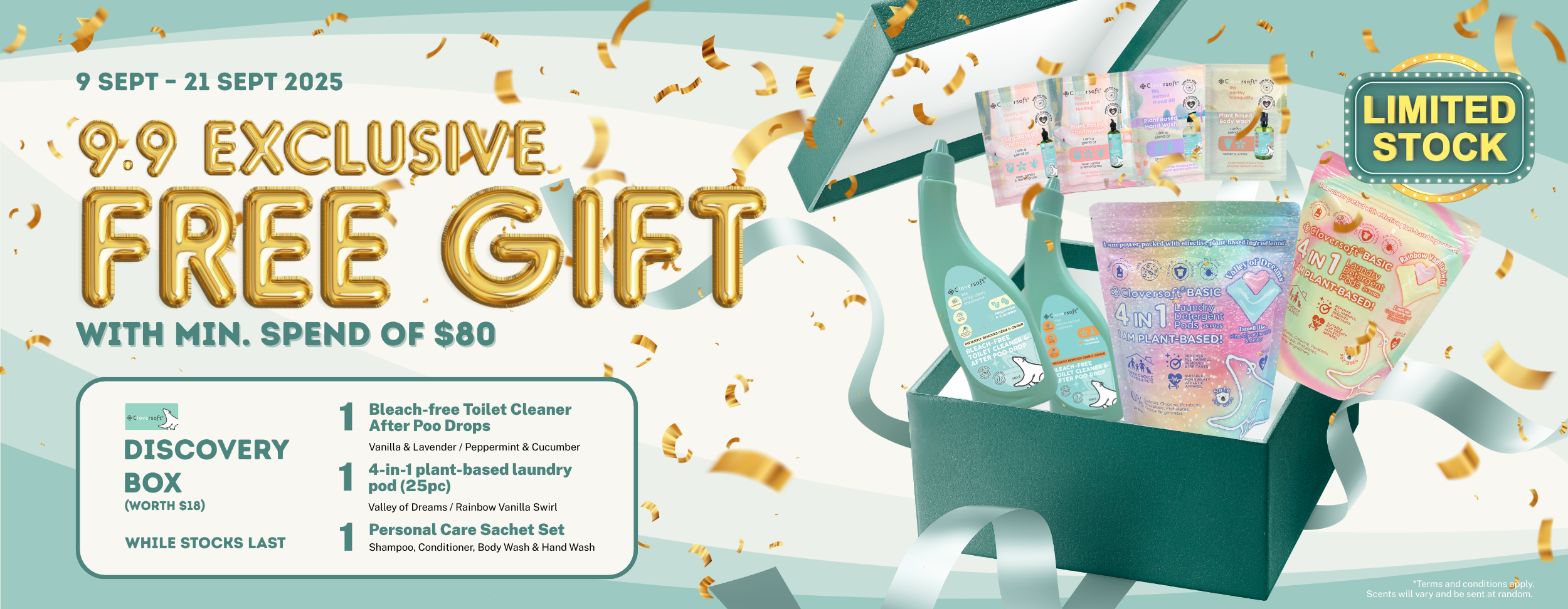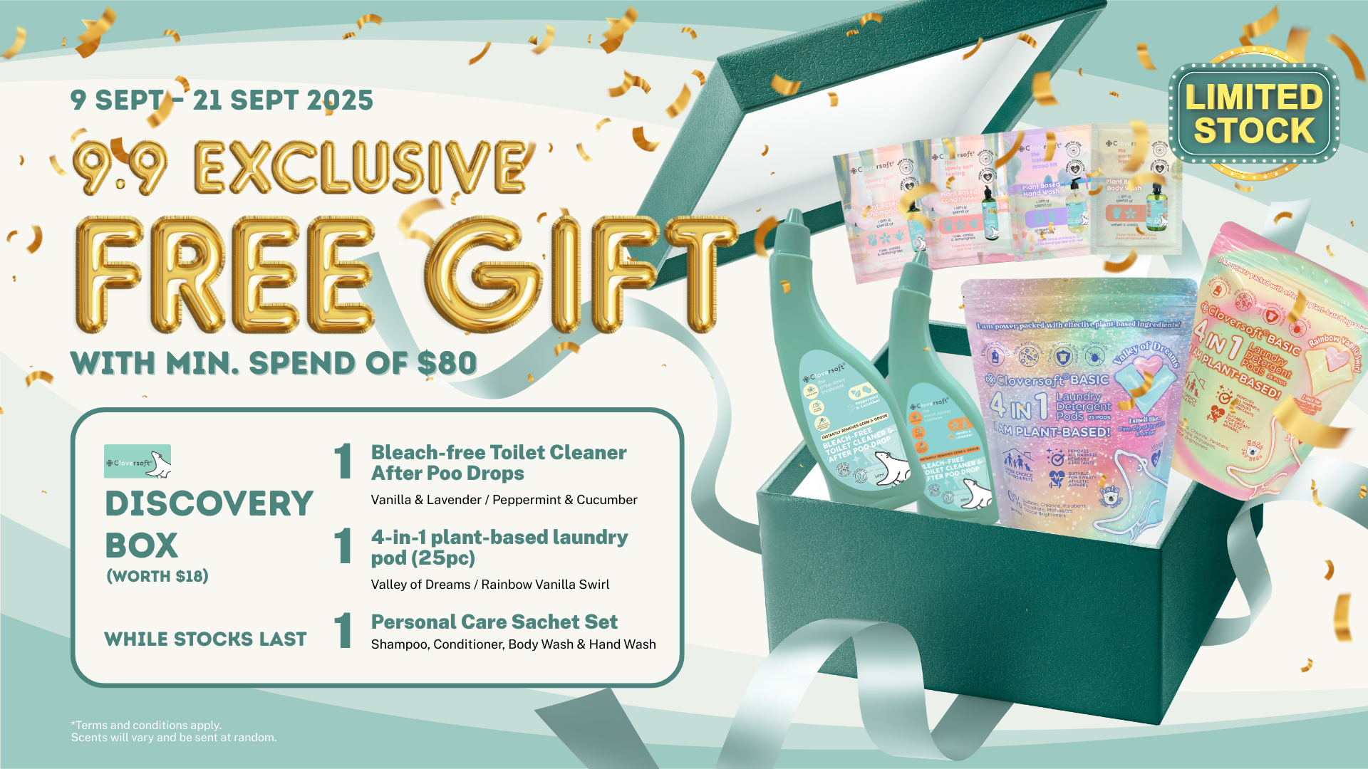 Receive a FREE Cloversoft Discovery Box with a minimum spend of $80 and above sitewide, while stocks last.