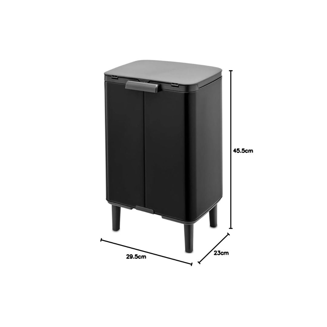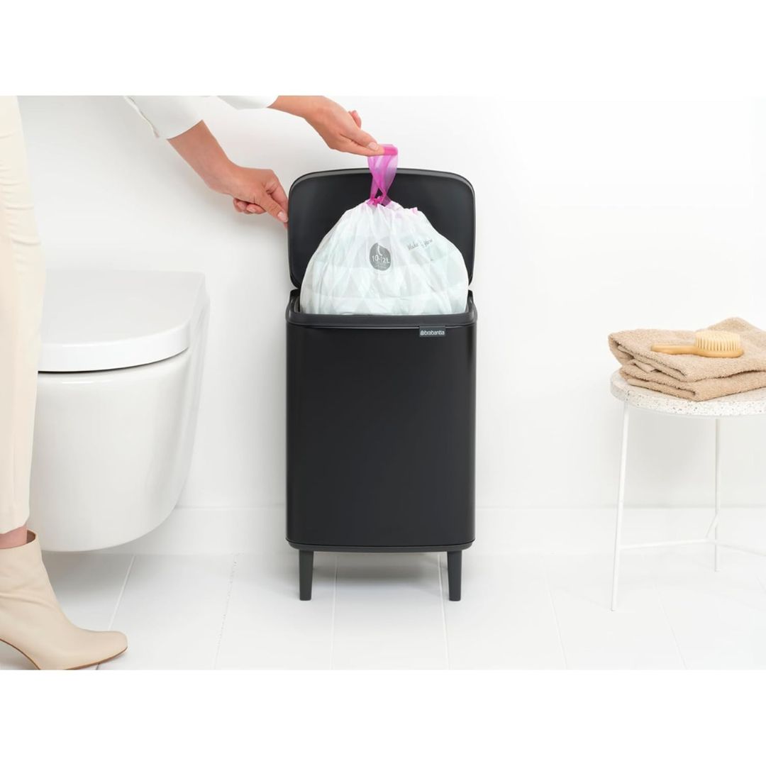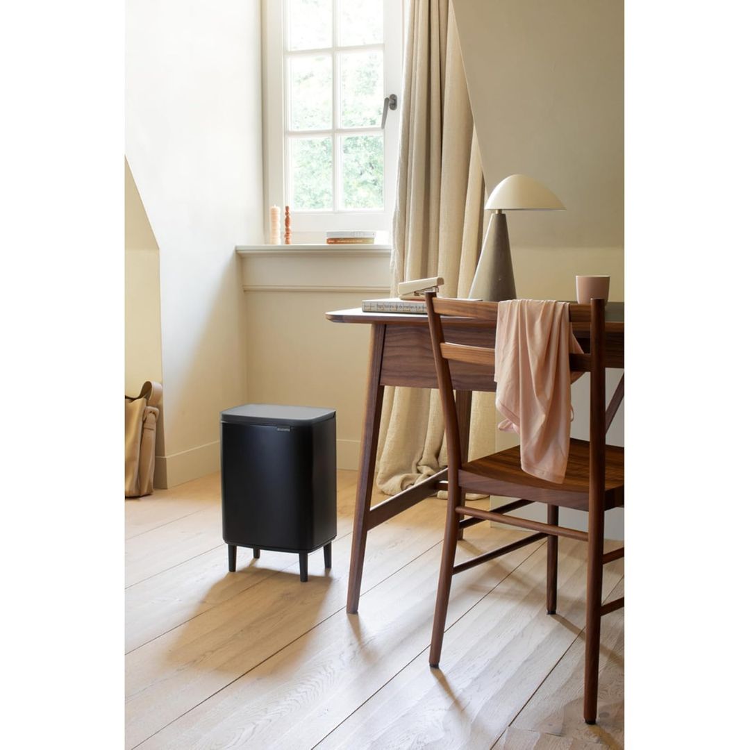 The Brabantia Bo Waste Bin Hi 12 litre is a beauty on four elegant legs. The unique lid lifts easily from the left, right and front of the bin. So no more twisting your arm to put something in. Another plus: the grip for easy moving and emptying. And thanks to its size and design, this bin does well in any room. A fairytale bin!