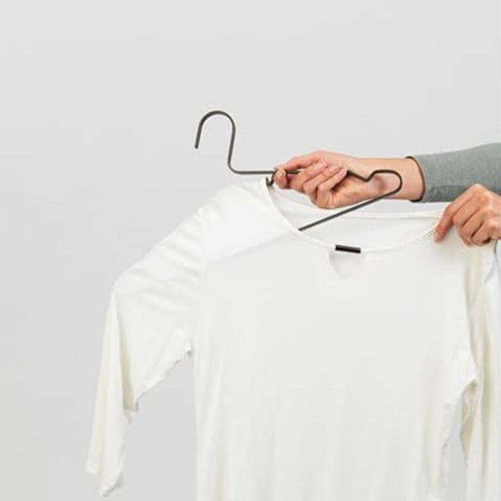 Hang your clothes the easy way with these clever Brabantia clothes hangers. The nifty notch at the top gives you room to manoeuvre, and to hang your clothes without stretching the neckline. The hangers are made of durable, anodised aluminium. To top if of, the clever notches on both sides of this hanger make it ideal for any clothing with straps. A set of four clothes hangers to hang on to!