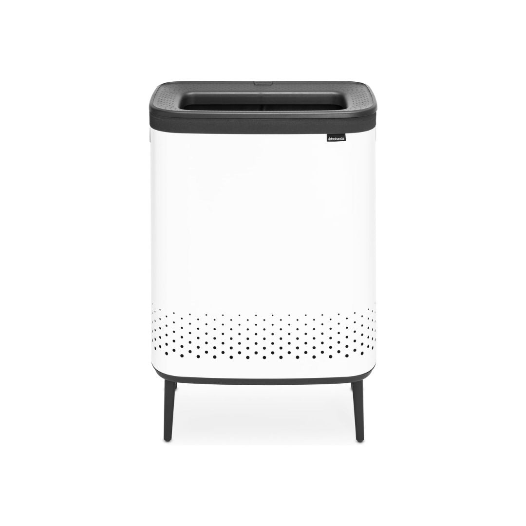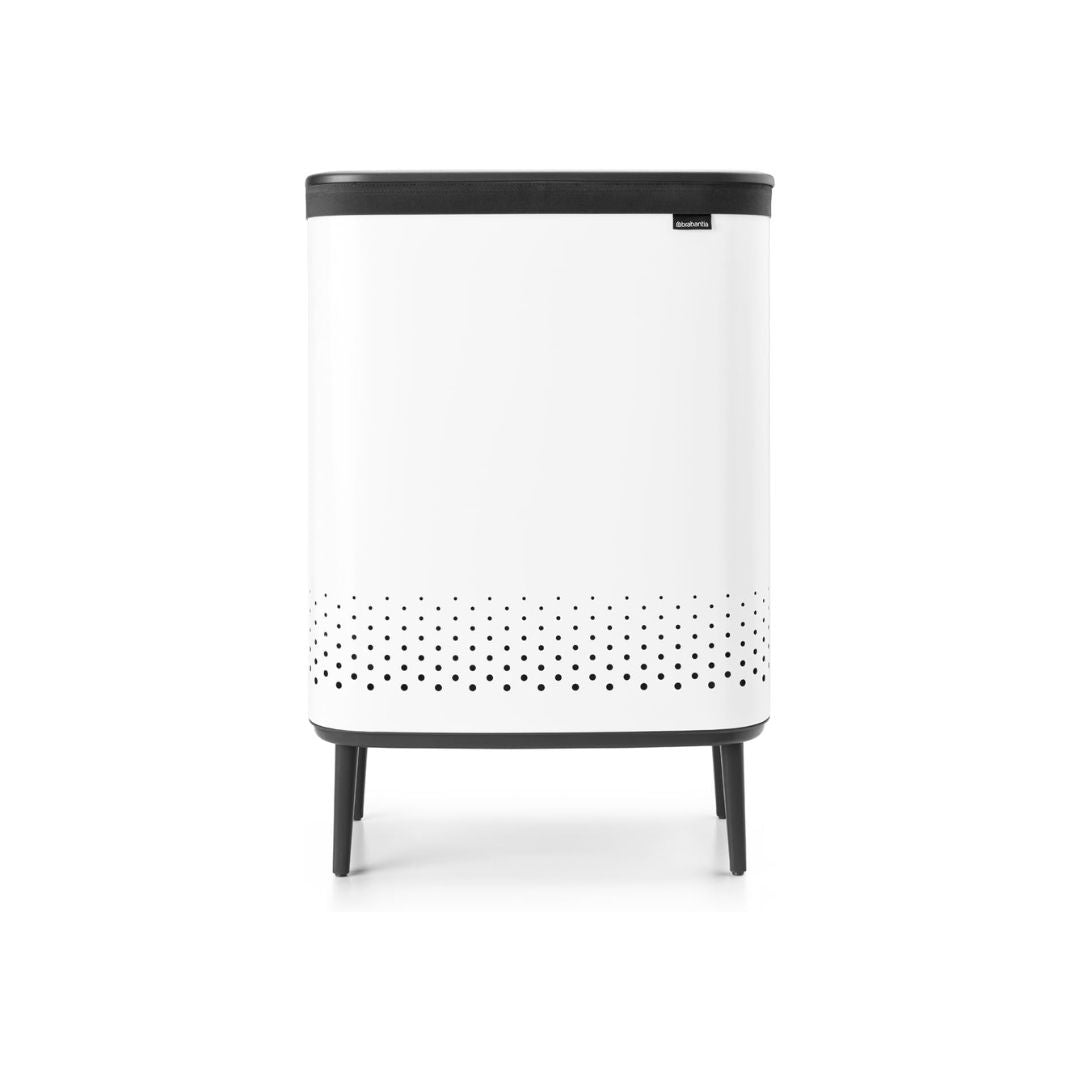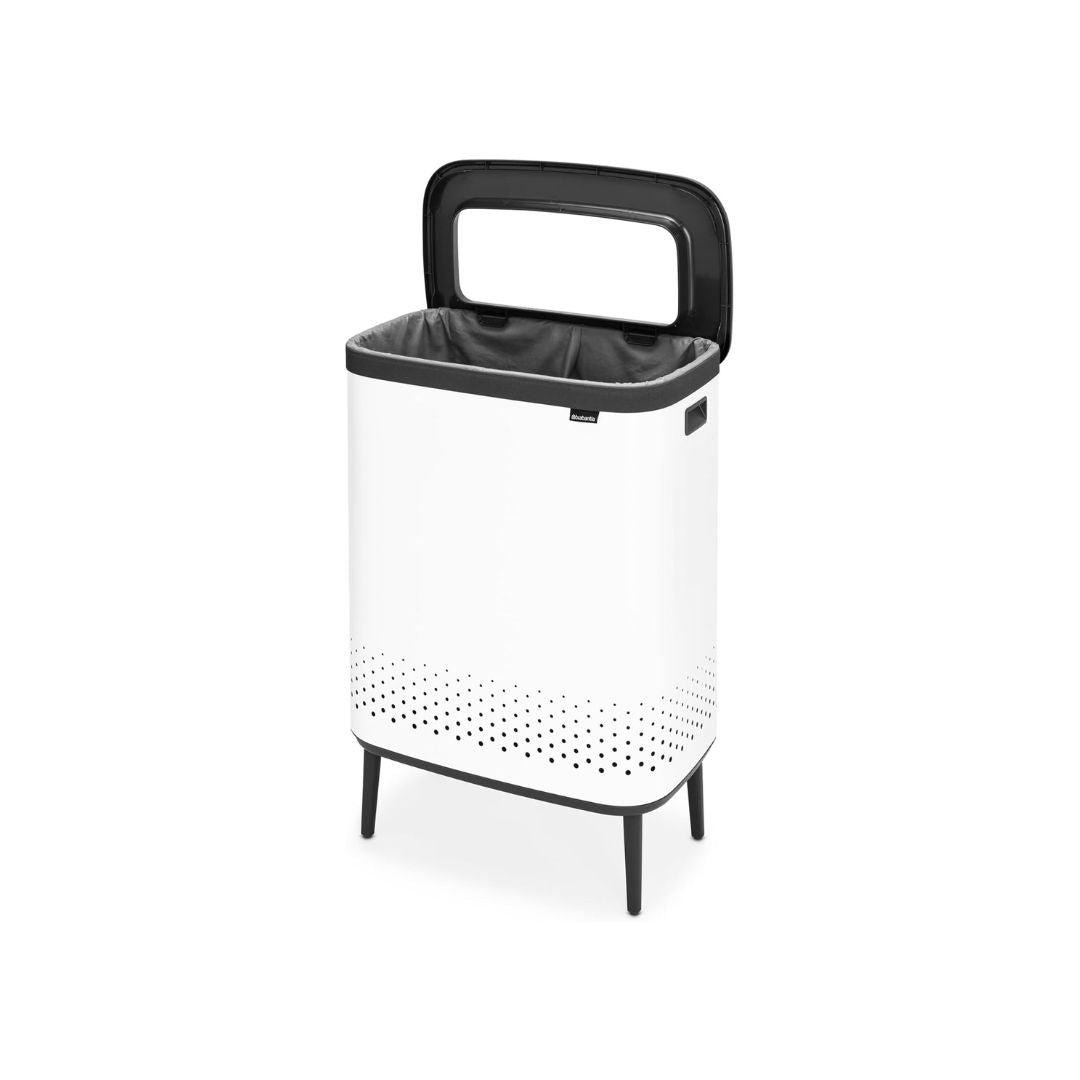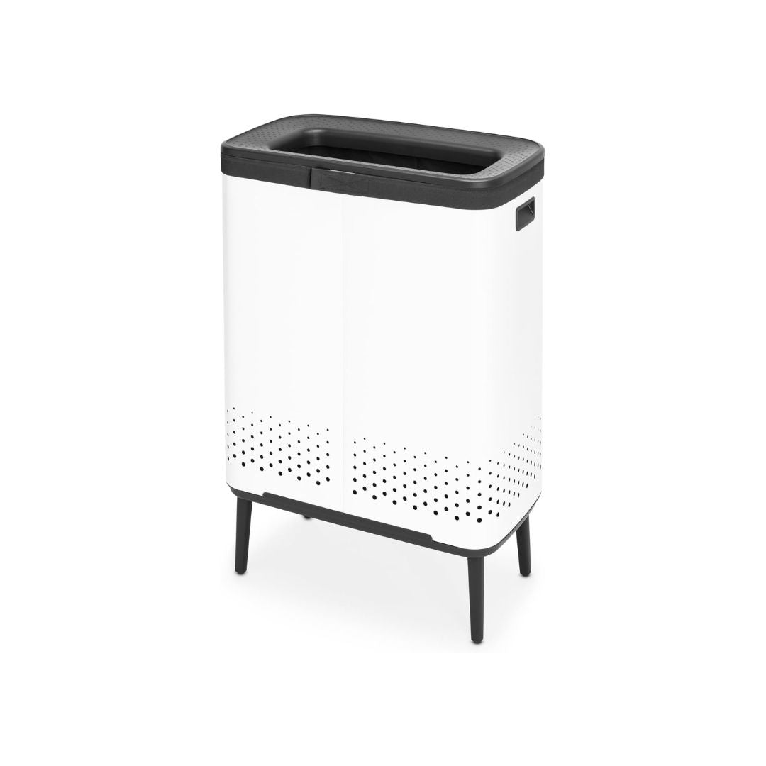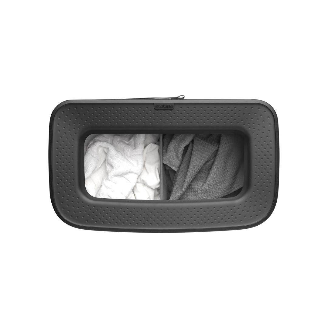 Brabantia makes laundry day a fashionable event, with the 2x45 litre Bo Laundry Bin Hi. The cabinet-like design makes it a great decoration piece in the bedroom or bathroom. But there’s more to this laundry bin than lovely looks! Like its perfect height, smart ventilation holes and the two-compartment laundry bag inside for sorting laundry at the source. The nifty lid has a clever Quick-drop opening, significantly increasing the chance that the clothes of your family members actually end up in this laundry bin. The lid can be put upright too. On washdays, take it off to simply remove the perfectly fitting laundry bag inside and transport the load to your washing machine with the same ease. Sorted!