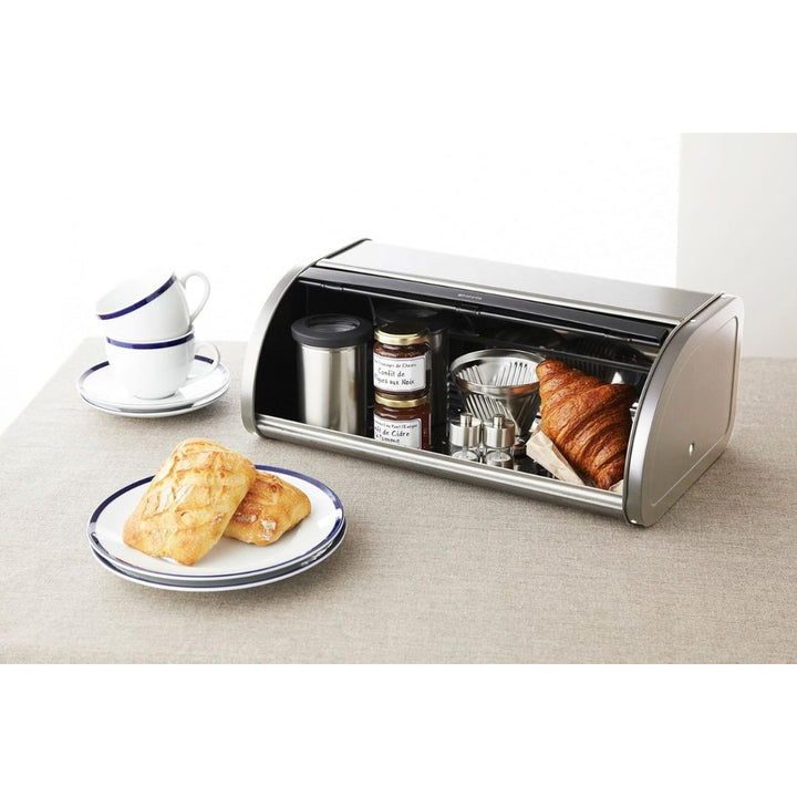 Keep your bread handy and fresher for longer in Brabantia's Roll Top Bread Bin. This beauty of a bread bin can hold up to two loaves, or anything else you want it to, and has a large grip for easy opening. It's space efficient too: the lid disappears inside the bin, and you can put your canisters on the partially flat top. A practical and stylish addition to your kitchen!