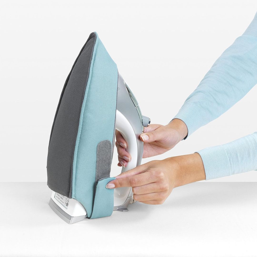 Store your hot iron safely right after use with Brabantia’s heat resistant iron cover. Fits all irons thanks to the adjustable Velcro strap.
