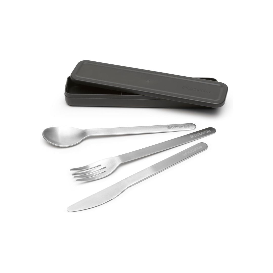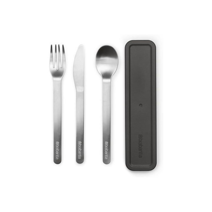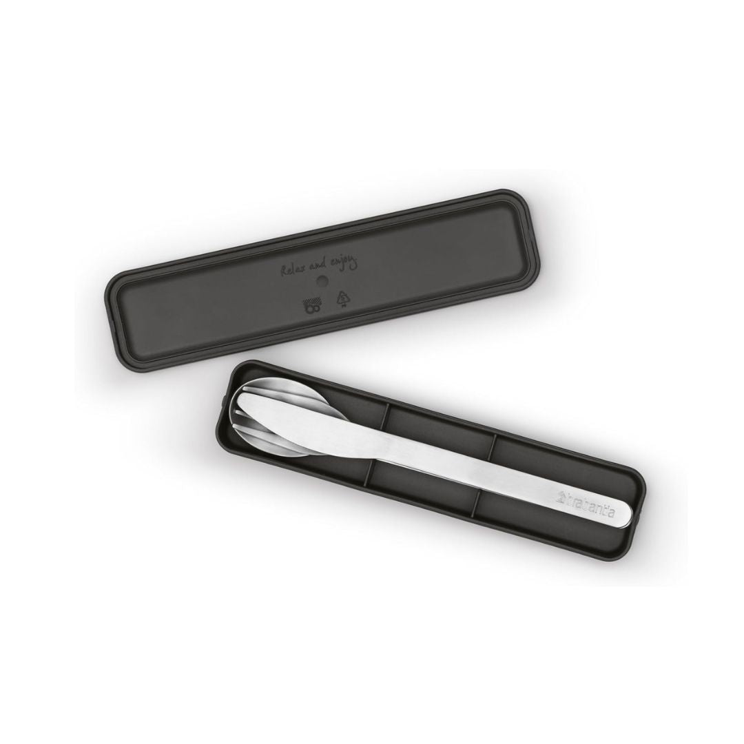 Stop using plastic flatware when on-the-go, use this reusable Brabantia Make & Take Cutlery Set of 3. A timeless knife, fork and spoon in high-quality stainless steel. Easy to clean, dishwasher safe and securely packed in a compact case. A set to reuse for a long, long time!
