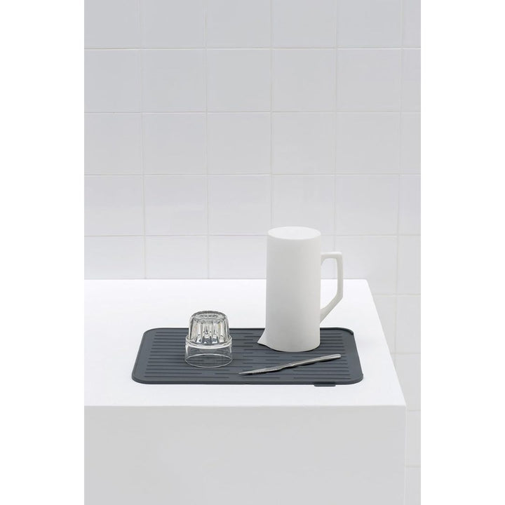 Need some extra draining space? Just whip out this Brabantia SinkSide Silicone Dish Drying Mat. Soft and non-skid so less chance of chipping. The silicone is durable, easy to clean, dishwasher safe and foldable too. Simply a must-have mat.