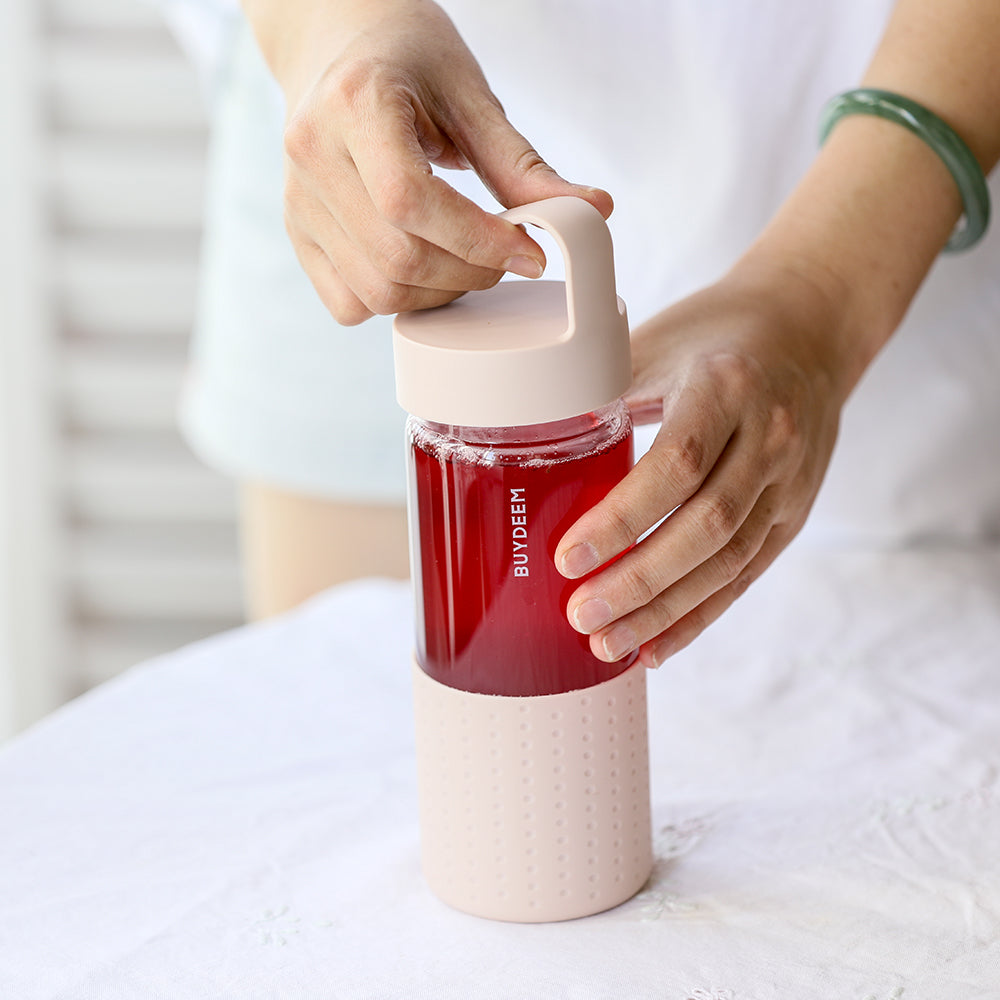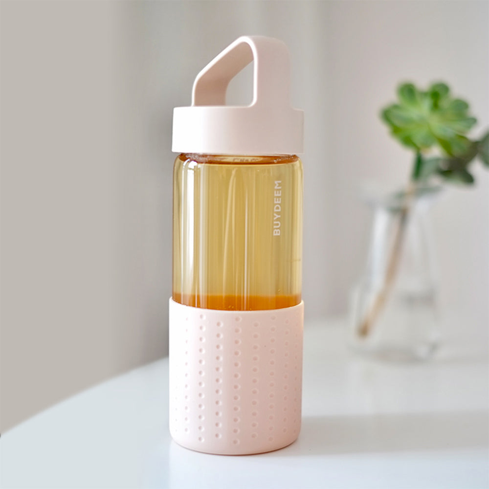 Buydeem Portable Glass Bottle is the perfect solution to your daily water intake struggles. It comes in a 400ML capacity, which is not too big nor small and is easy to bring around. Designed to encourage you and your family to take healthy beverages with you throughout busy days. Boasting a sleek body and available in three chic calming colors, this reusable bottle fits into any lifestyle or activity with ease. Bring around water or any other beverage with this reusable glass bottle and reduce the use of one-time use plastic water bottles.