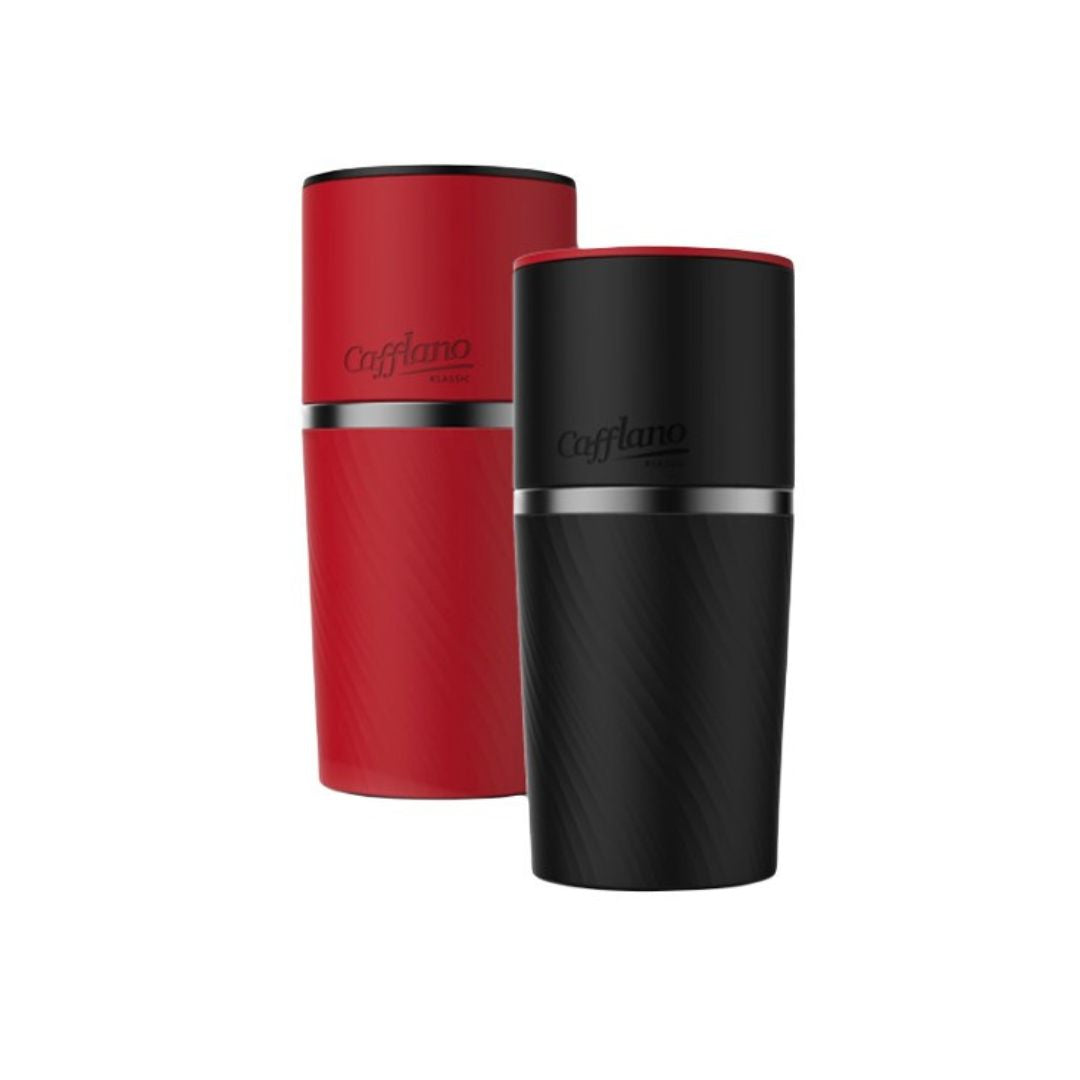Cafflano® Klassic is the world’s first portable pour-over coffee maker reflecting an intuitive and epoch-making all-in-one design. It consists of coffee grinder that has a foldaway conical burr ceramic hand-mill, dripping kettle, dripper, server, etched stainless filter and tumbler, and all of those components are integrated into a single assembling unit.