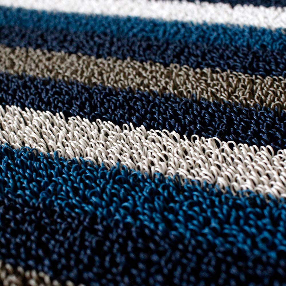 The alternating same-width stripes in the layout reference a designer's color study, recalling paint swatches or color palette research. Each mat features dark and light colors in related colour families, creating a stunning ombré that emulates the seasons changing from colder to warmer. With a backing of hardworking vinyl, shag mats are slip resistant and ideal for entryways, kitchens, bathrooms, outdoor spaces, and pool areas.