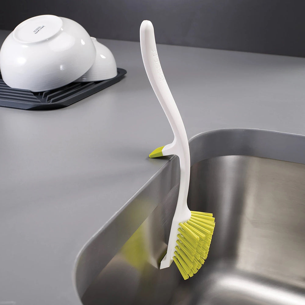 This clever washing-up brush is designed to rest securely on the side of your sink, letting all the soapy suds simply drain away.