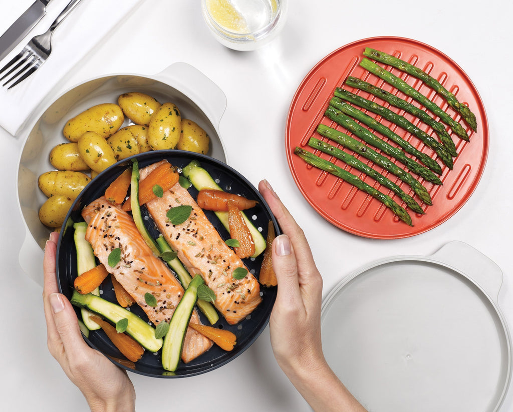With four inter-changeable pieces, this stackable microwavable cooking set allows you to cook anything from a single food right up to a full meal, ensuring everything is ready at the same time