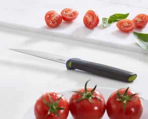 The sharp, serrated edge of this knife is perfect for cutting soft-skinned fruit and vegetables and is also suitable for small loaves of bread or rolls