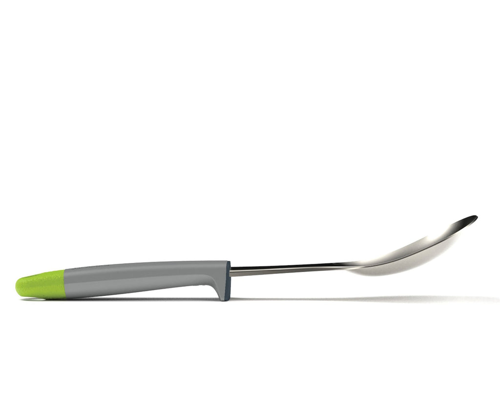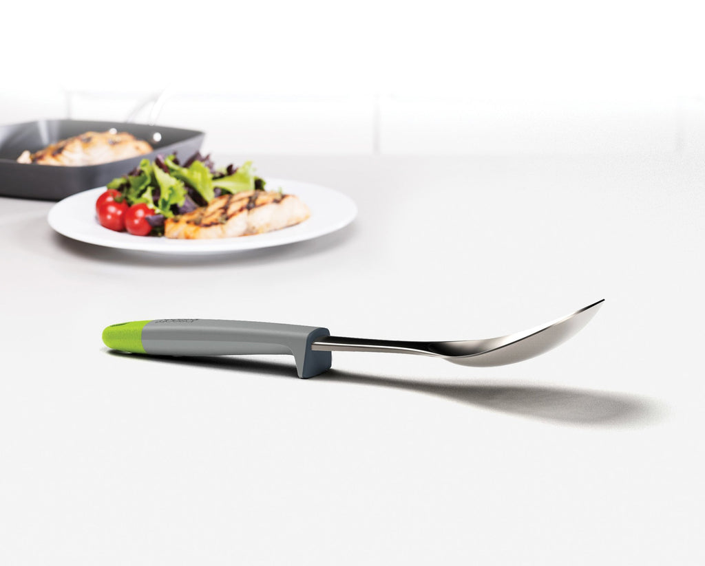 This stainless-steel solid spoon is ideal for a range of cooking tasks and has an integrated tool rest that stops its head from touching the surface it's placed down on
