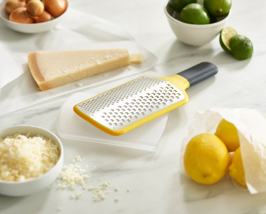 This compact grater features two styles of grating blade in one design so you can save valuable space in your drawer
