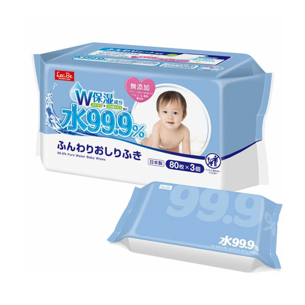 LEC 99.9% Pure Water Baby Wipes 80x3 pack