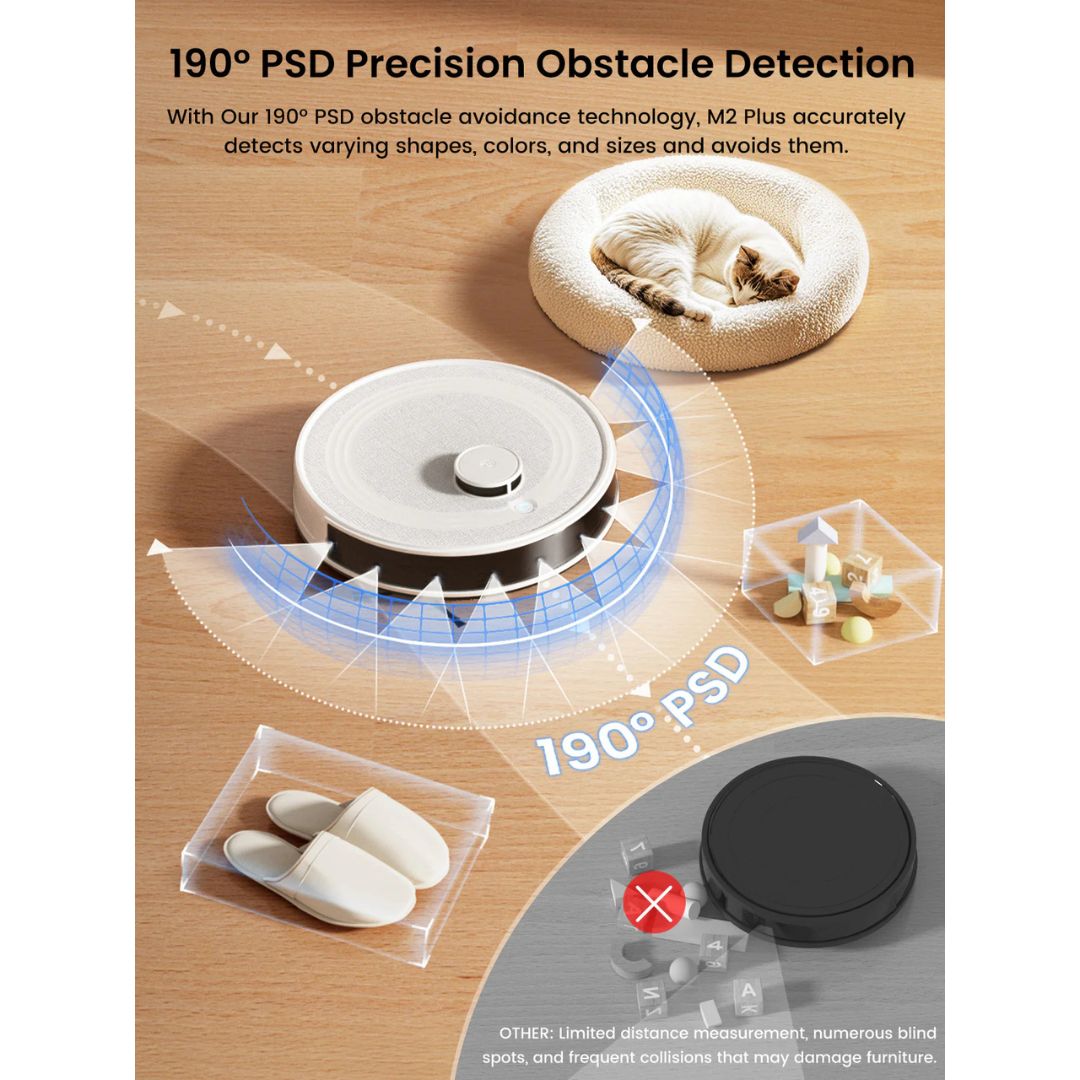 LEFANT M2 Plus Vacuum Cleaner and Mop Robot Combination, 190° PSD Obstacle Avoidance, LIDAR Navigation, 40-Day Capacity, Powerful Suction Power, 140 Minutes Runtime, WiFi/App/Alexa
