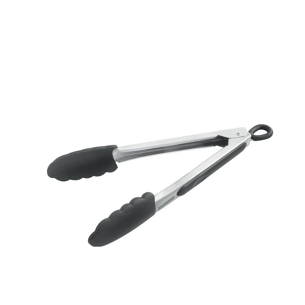 The Leifheit kitchen and grill tongs is ideal for the precise holding and safe turning. Whether as spatula, bread or pasta holder — the sturdy tongs made of stainless steel with its fluted holding surface has steaks under control as well as spaghetti. Thanks to the silicone coating the tongs can also be used in Teflon coated pans, without scratching the sensitive non-stick coating. For the space saving storing the tongs can be locked. It has an eyelet for hanging and is therefore always ready to hand. Length 23cm.