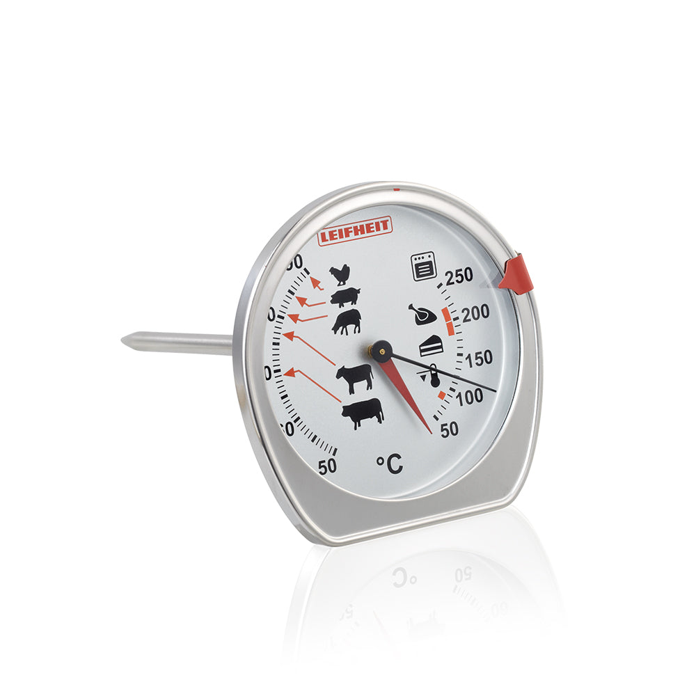 - Measures the oven temperature as well as the inside temperature of meat etc. thanks to the long stainless steel sensor