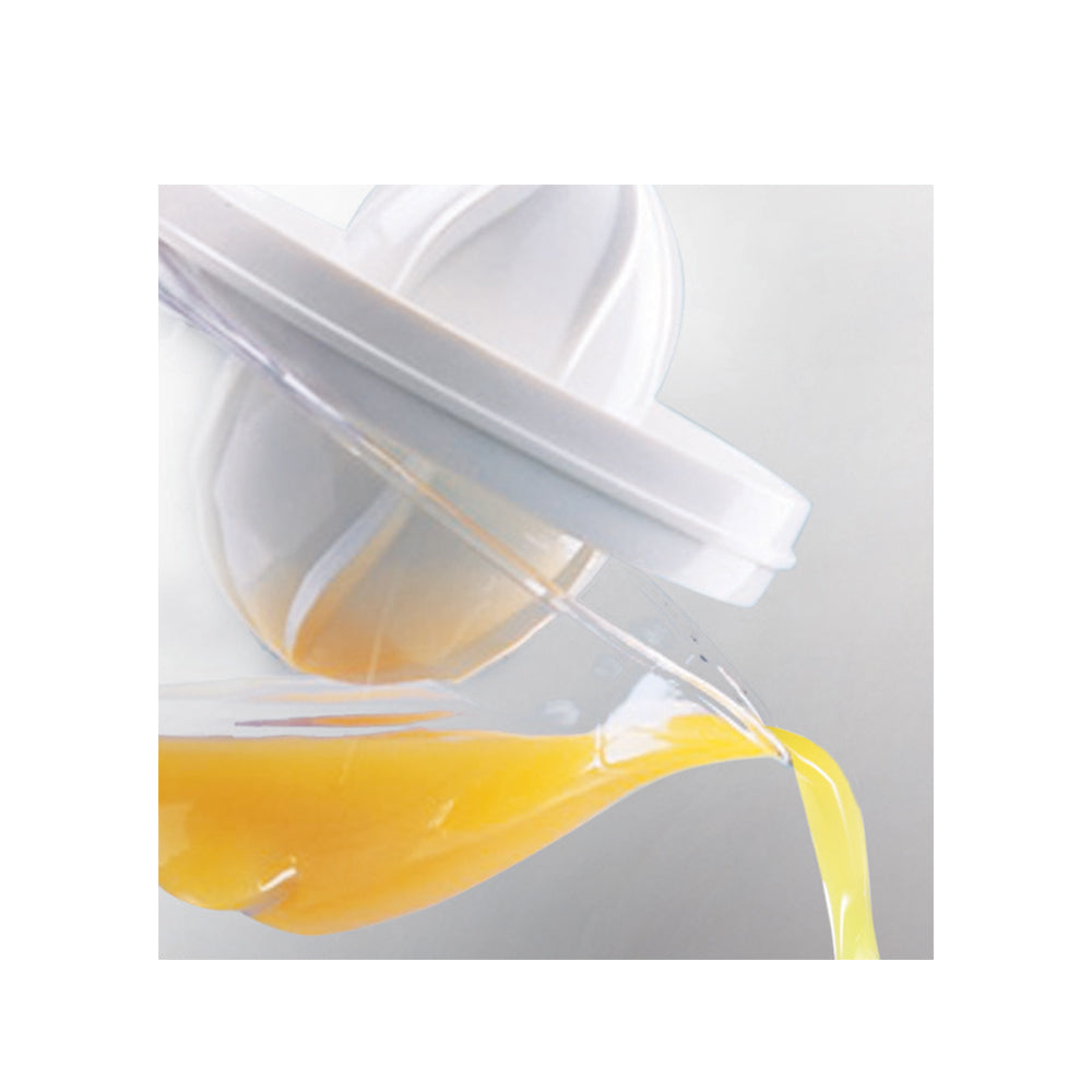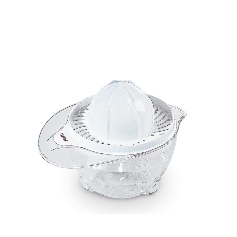 A press for all the citrus fruits. The Leifheit ComfortLine citrus press is made of high quality plastic that offers a double cone to press small and large citrus fruits easily. The small cone is suitable for lemons, limes and mandarins. For the pressing of oranges or grapefruits simply turn the upper part to use the large cone. A large container with measuring scale contains the juice of several fruits. A practical spout enables non-drip pouring into a glass.