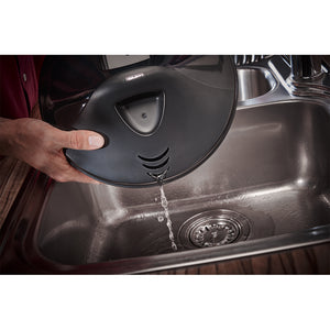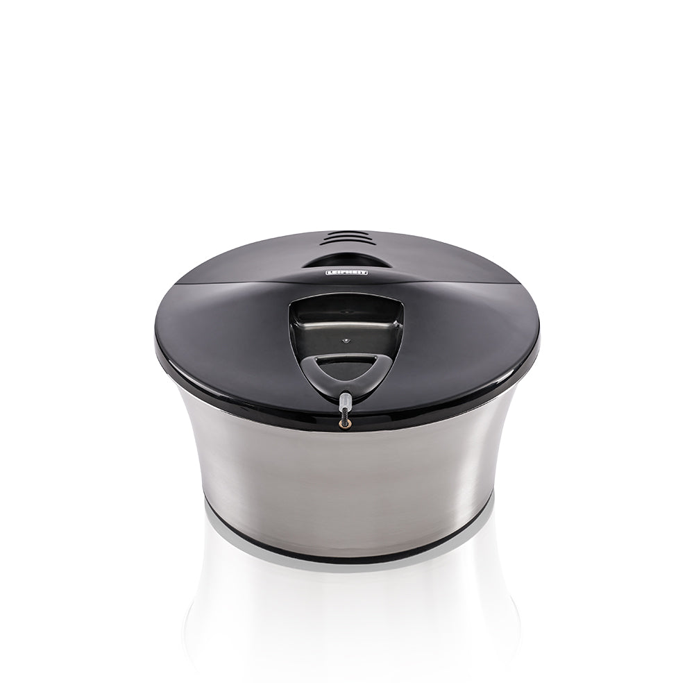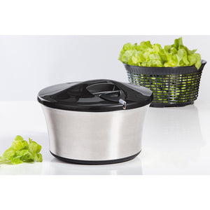 Freshly prepared salad tastes best when it's so dry that the salad sauce really clings to the salad leaves. Nothing could be easier with the high-quality stainless steel salad spinner from Leifheit. The beautifully designed curved bowl isn't just an elegant serving bowl that looks great on any dining table. It also hides a refined and effective drying mechanism. The stable sieve is spun left and right alternately with the easy to use cable pull. This dries the salad gently and thoroughly. Just pull a few times on the cable pull and the salad is ready for dressing.