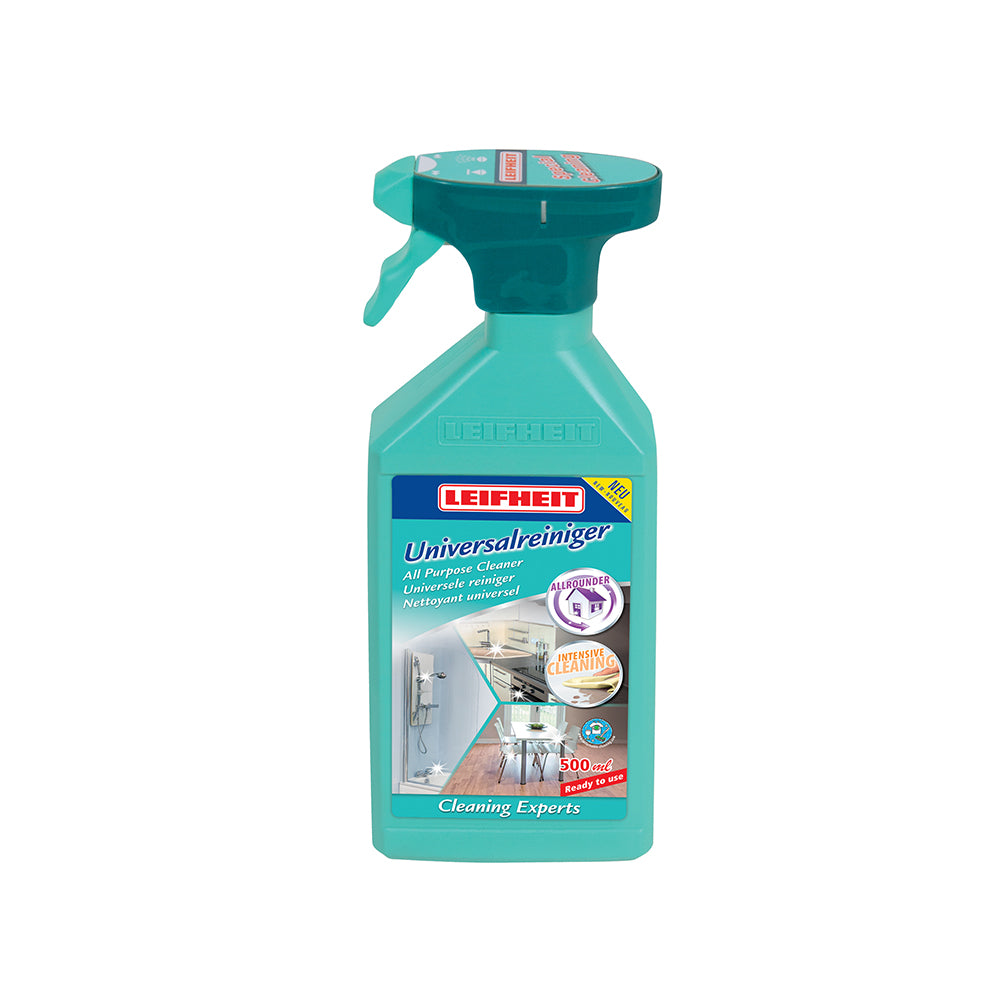 Quick and thorough cleanliness for the household: Leifheit Universal cleaner removes dirt, fat and stains from all smooth and light structured surfaces. Even glass and mirrors become clean in a flash and gleam streak-free. Available in the 500 ml spray bottle, with two dosages fine and coarse for the efficient dosage. With the whole competence for cleaning devices Leifheit offers a series of cleaning agents, which are perfectly coordinated with the special covers.