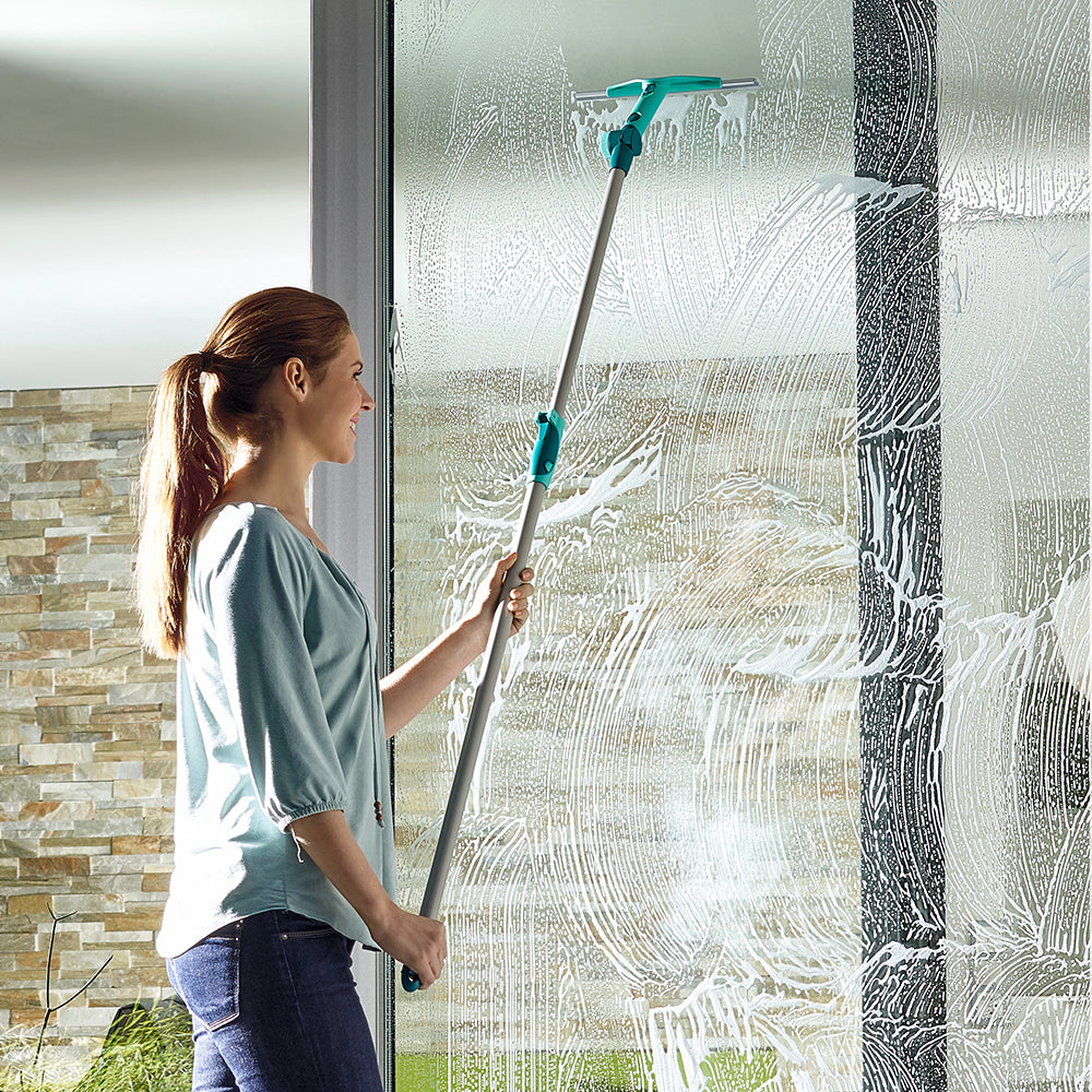 - The Click System connection on the Squeegee means it can also be combined with any sized Leifheit Click System handle attachment for reaching high areas