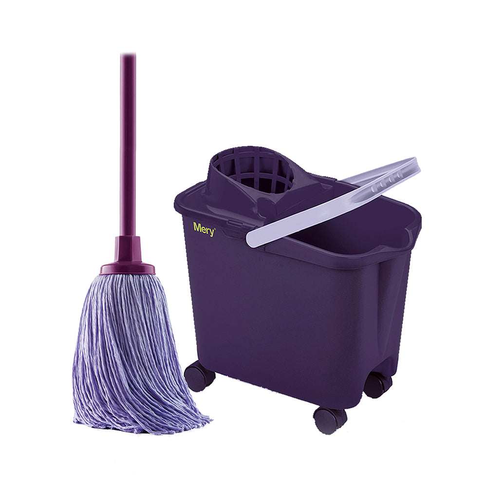 The all-purpose Mery traditional mop set is built with the highest quality material. With a 22cm Micro-fiber mop head that cleans dirt with ease and a highly durable mop bucket withstand heated water that is perfect for mopping.