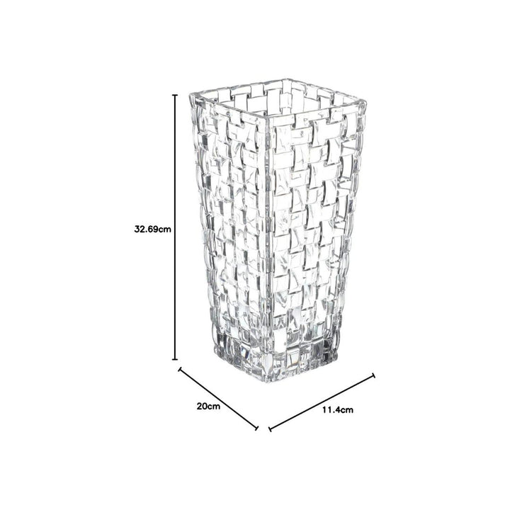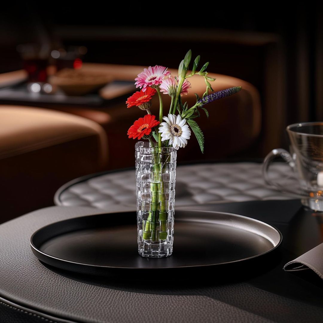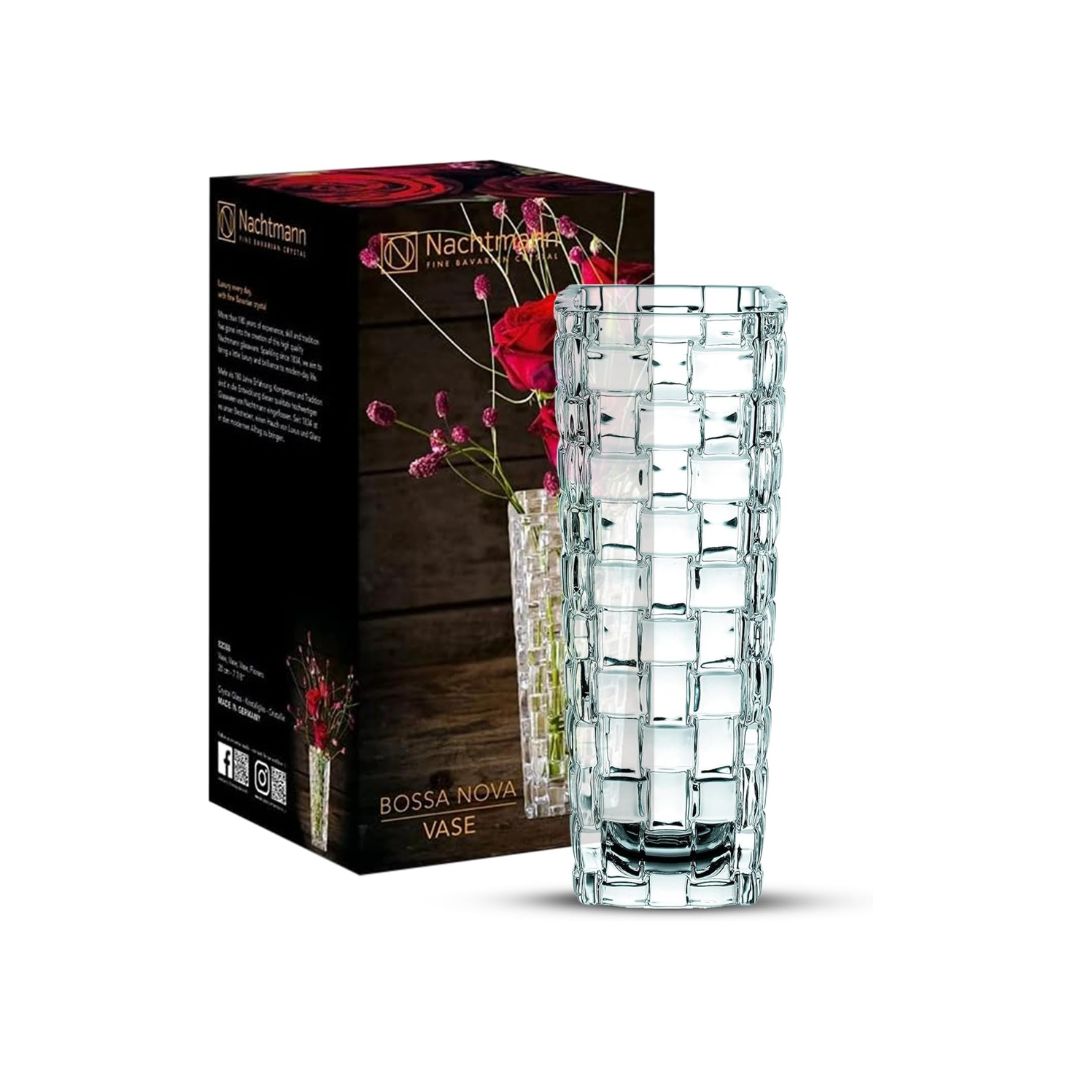 Nachtmann 183NM-R-82088 Bossa Nova Lead Free Crystal Vase is a perfect match for showcasing a stunning bouquet of flowers. Crafted from high-quality crystal glass, it brings luxury to your bar, restaurant or home. Inspired by the cool sensibility of the dance for which it is named, this Bossa Nova vase exemplifies quality and style. Featuring the signature textured basketweave design of the Bossa Nova series, this eye-catching vase provides a delightful tactile experience, inviting the fingertips and enhancing the overall aesthetic appeal. This vase with its heavy base and sumptuous cut pattern, is essential for any distinguished bar or restaurant, embodying a perfect balance between nostalgia, iconic status and glamour. The touch of luxury surrounding this elegant vase inspires a newfound appreciation and respect for the art of refined decor.
