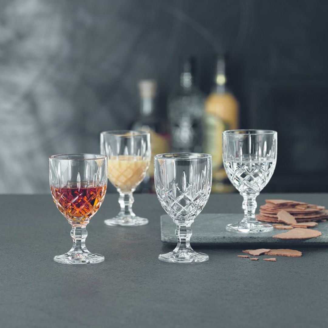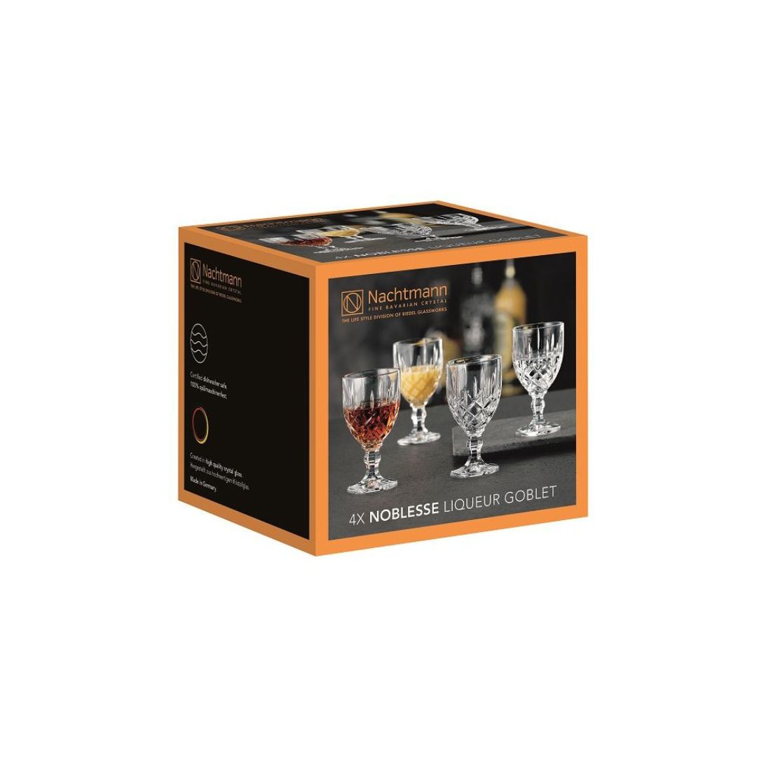 The Noblesse series brings a touch of luxury to your home and celebrates the revival of classic design. Beautifully cut from the finest crystal, this set is a ‘must have’ for whisky connoisseurs, cocktail lovers, and anyone else who wants to bring a new lustre to their home bar. The 4 piece Liqueur Goblet set is perfect for a small serve of spirits, designed to highlight the aroma and taste while tempering the alcohol. The small cupped bowl allows its contents a very small evaporation surface and its decadent decoration will bring style to your drinks.
