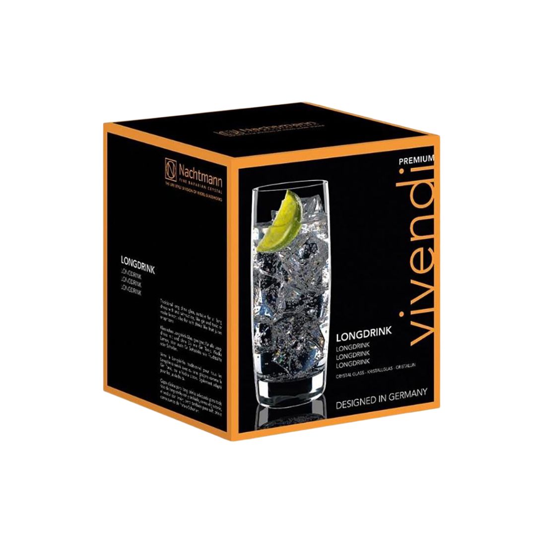 This set contains 4 Vivendi Hi Ball glasses, 413ml. Beautifully and elegantly designed to clearly display your liquor, cocktails and mixes.