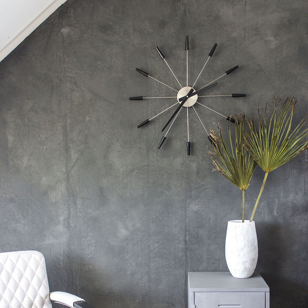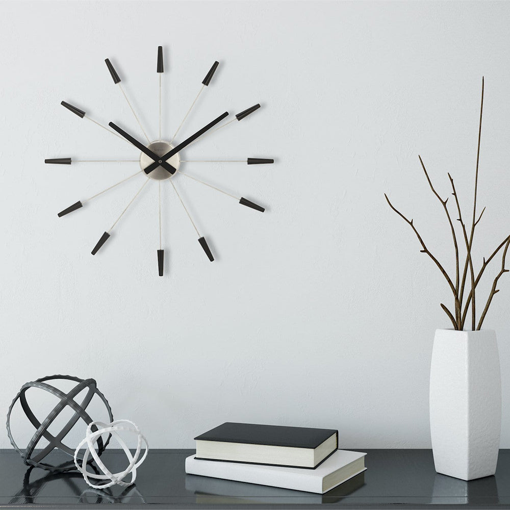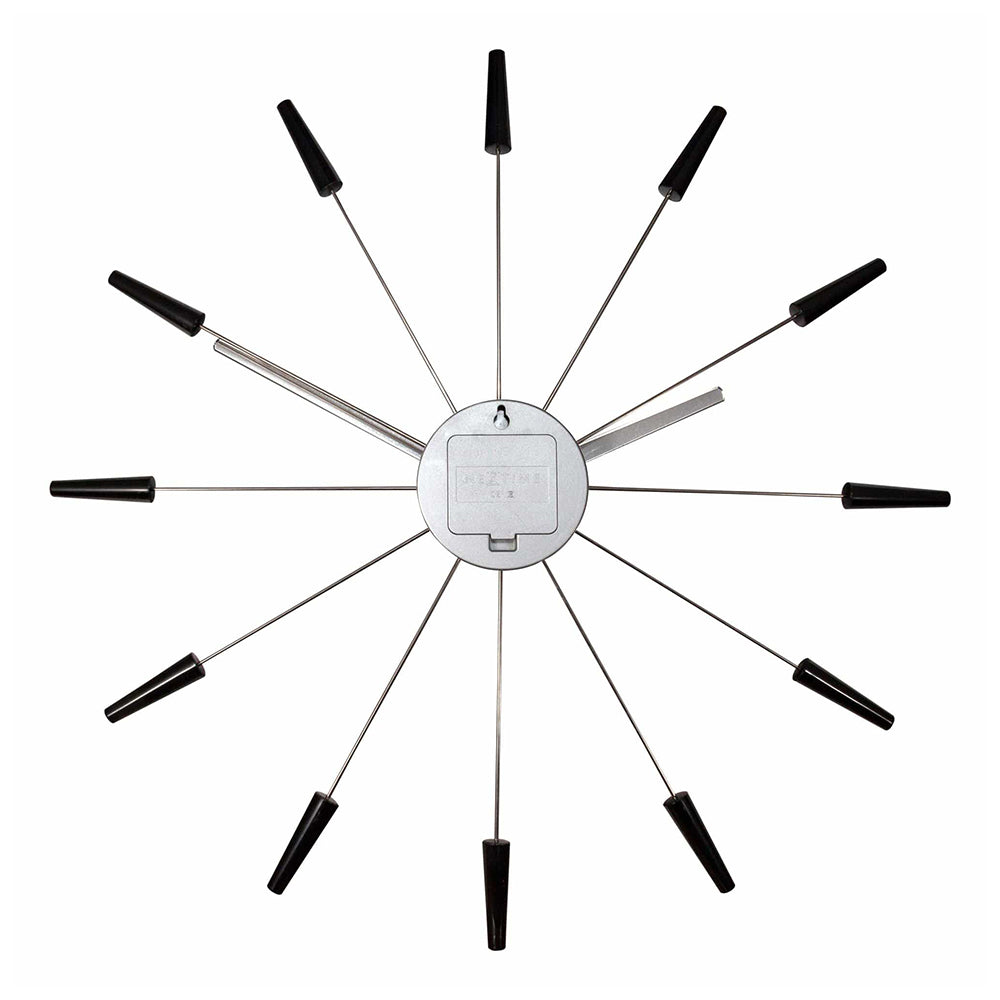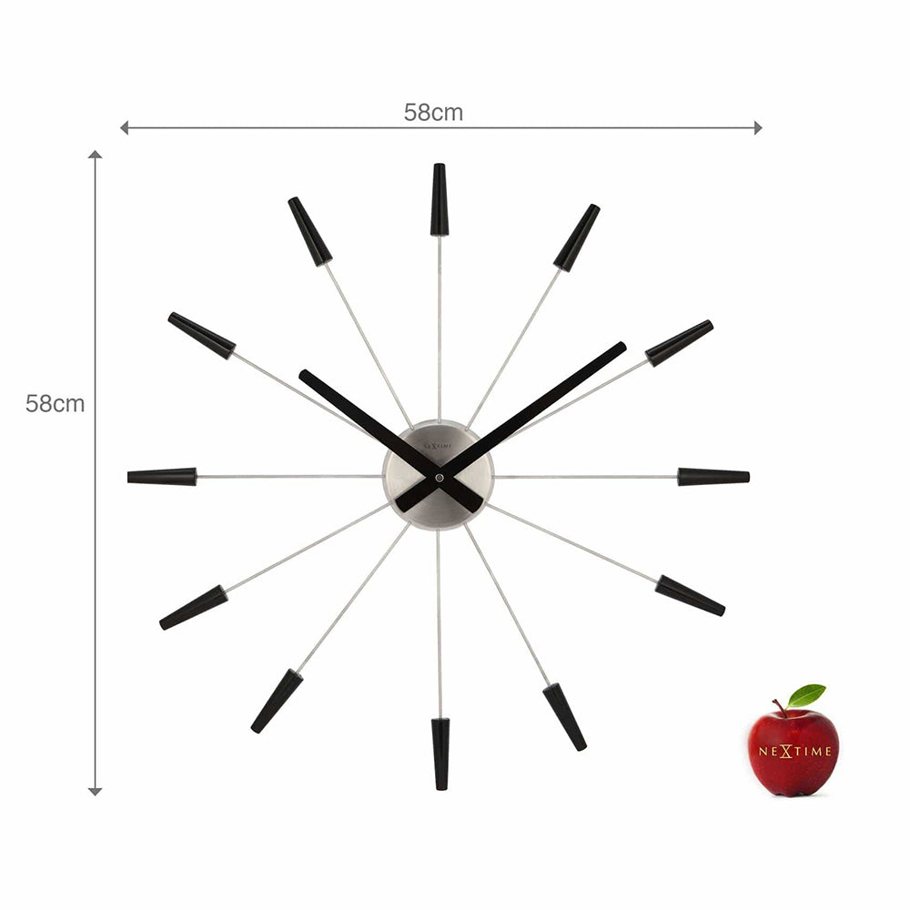 The NeXtime "Plug Inn" wall clock is a trendy design with pins that are made of stainless steel. Plug the pins easily into the centerpiece to create an hour index. This clock designed by Frits Vink is silent and original to decorate your wall. It runs on 1x AA battery (not included).
