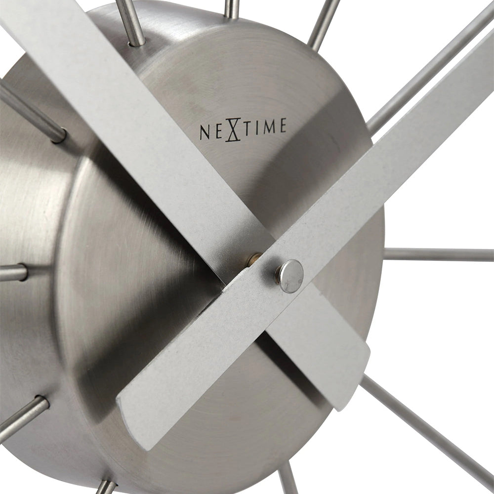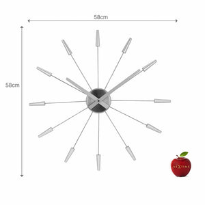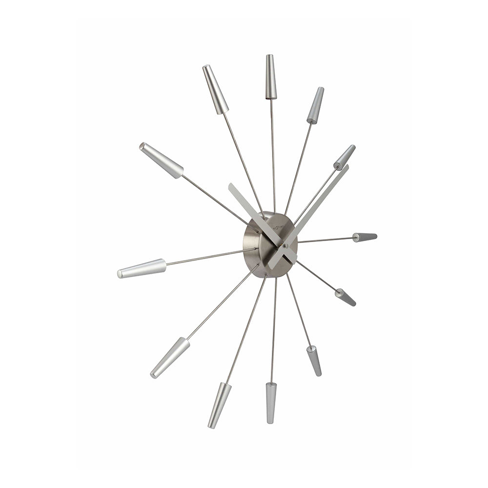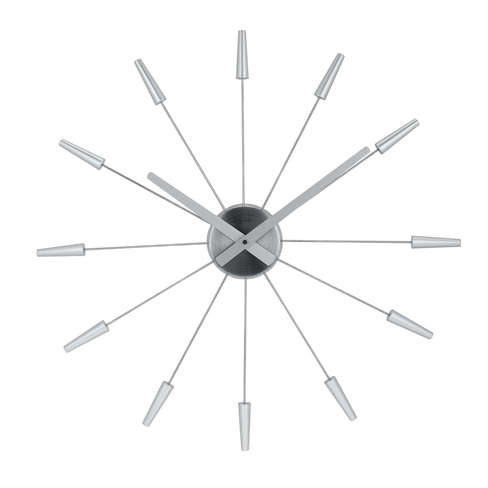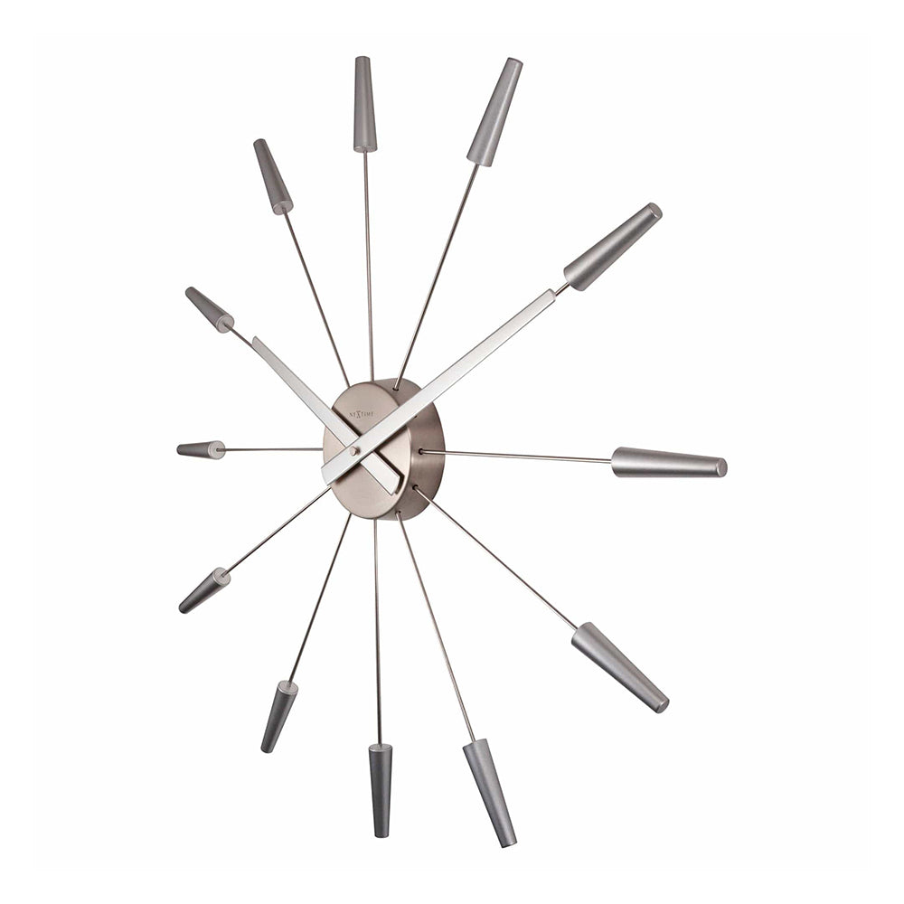 The NeXtime "Plug Inn" wall clock is a trendy design with pins that are made of stainless steel. Plug the pins easily into the centerpiece to create an hour index. This clock designed by Frits Vink is silent and original to decorate your wall. It runs on 1x AA battery (not included).