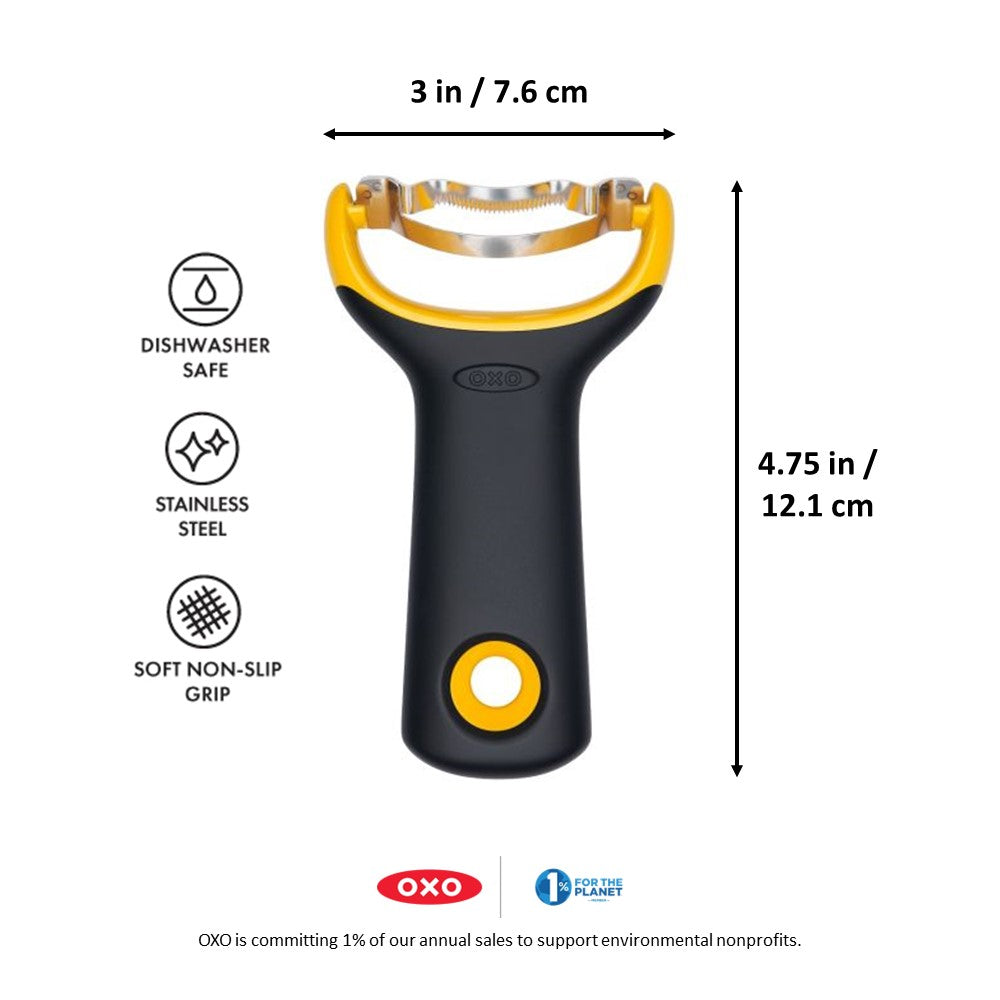 - Compact, comfortable, Y-peeler shape is easy to maneuver and works with every grip