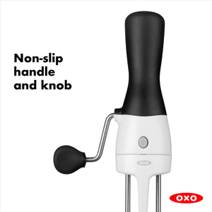 - Smoothly rotating gears are enclosed for protection and easy cleanup