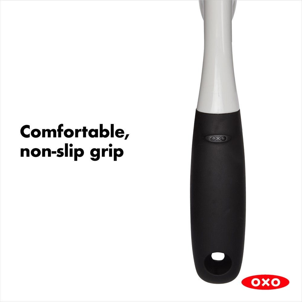 - Non-slip handle provides a secure grip, even when wet