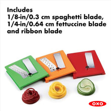 - Three stainless steel blades create spaghetti cut (3 mm or 1/8 in), fettuccine cut 6 mm or 1/4 in), or ribbon cut noodles