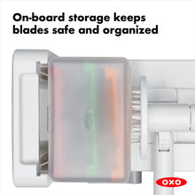 - Removable blade box keeps blades clean, safe and organized when not in use and stores onboard