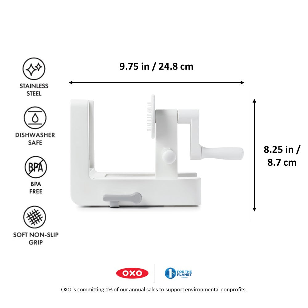 - Make quick work of creating uniform spirals from fruits and vegetables for curly fries, salads, garnishes and more