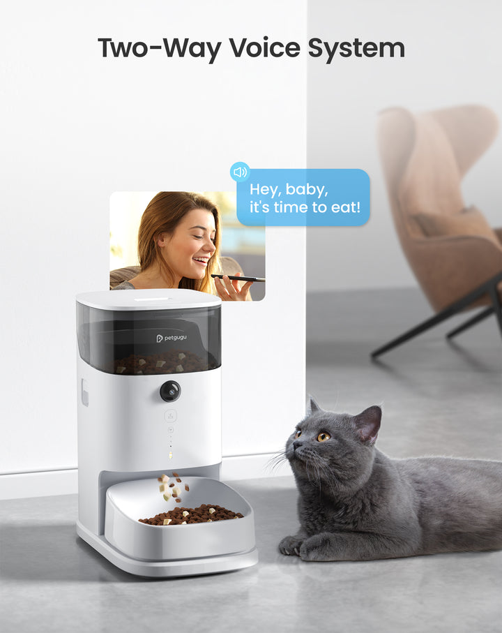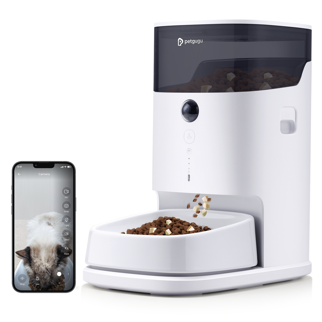 Precise, Scheduled Mealtimes: Following a strict meal plan or feeding guideline? Petgugu Smart Feeder With Camera For Cats & Dogs allows you to select exactly how many grams of food to dispense. You can also easily set up your pet's mealtimes so they are fed regularly.