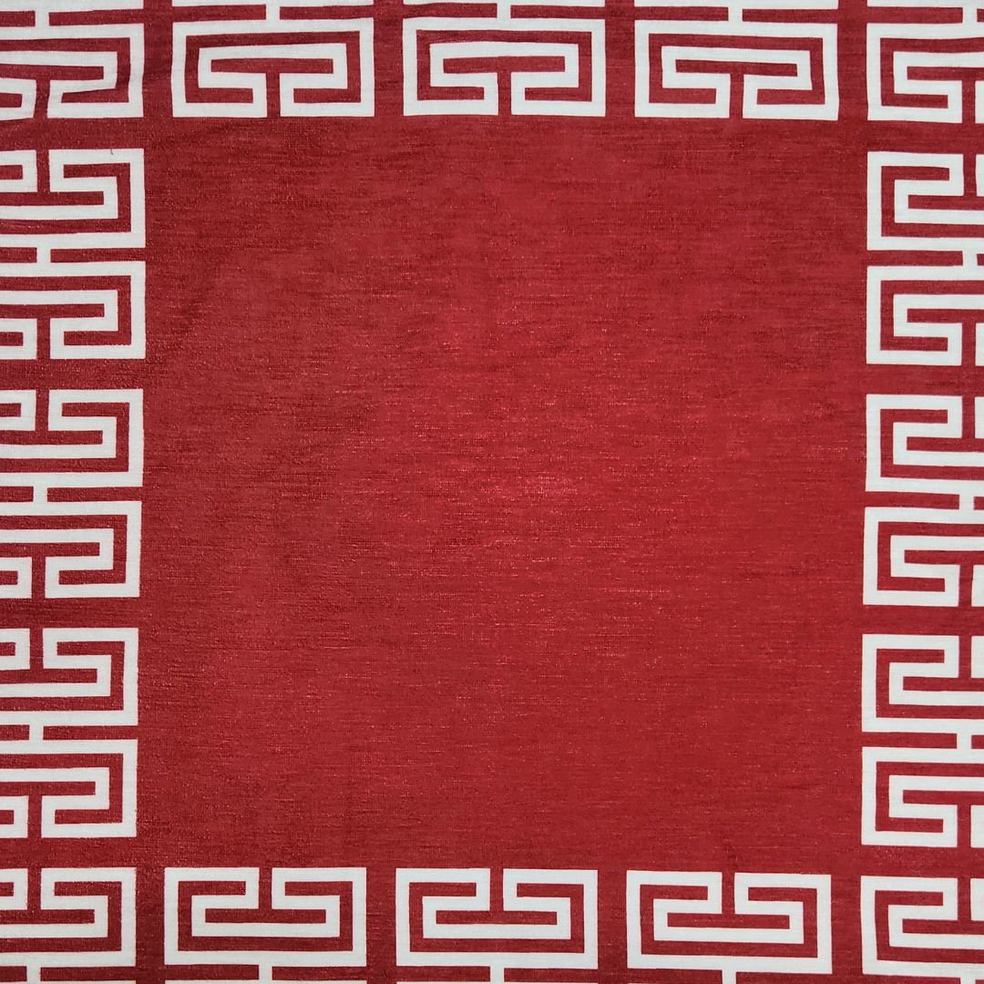 The contrasting colors of the Greek key pattern against the solid chenille background create a visually appealing focal point. Whether you choose to display the vibrant red or the fresh white side, this pillow will add a touch of refined style to your sofa, bed, armchair, or any other seating area.