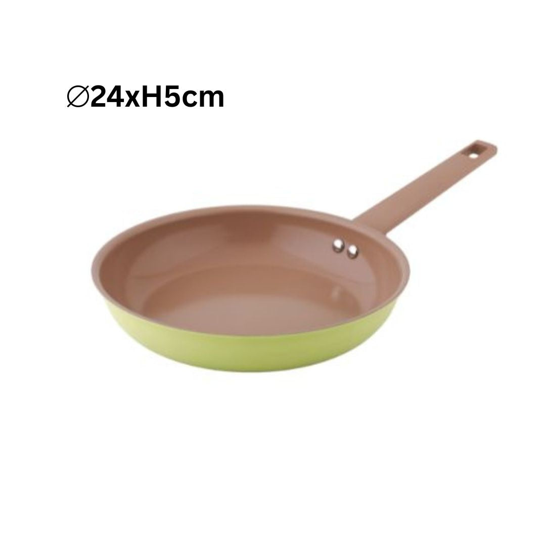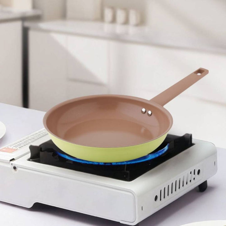 The Safico Pro Aluminum Non Stick Ceramic Fry Pan is designed for healthier cooking, free from harmful chemicals. Perfect for effortlessly cooking eggs, sautéing vegetables, and more, its non-toxic ceramic-coated interior ensures a durable, nonstick surface for stress-free cooking and cleanup. With its sleek design, this pan adds a vibrant touch to your kitchen.