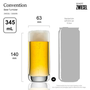 The beer tumbler from the CONVENTION collection by Schott Zwiesel fits into any ambience with its straightforward and robust design. With extra thick base ice, it convinces in form and function. The Convention Beer Tumbler is a perfect fit for Lager, Ale, Stout, Porter, Hefeweizen, Pilsner, Wheat Beer, Belgian Dubbel, Belgian Tripel, Saison, Gose, Lambic, Brown Ale, Red Ale, IPA (India Pale Ale), Double IPA, Sour Beer, Fruit Beer, Blonde Ale and Bock.