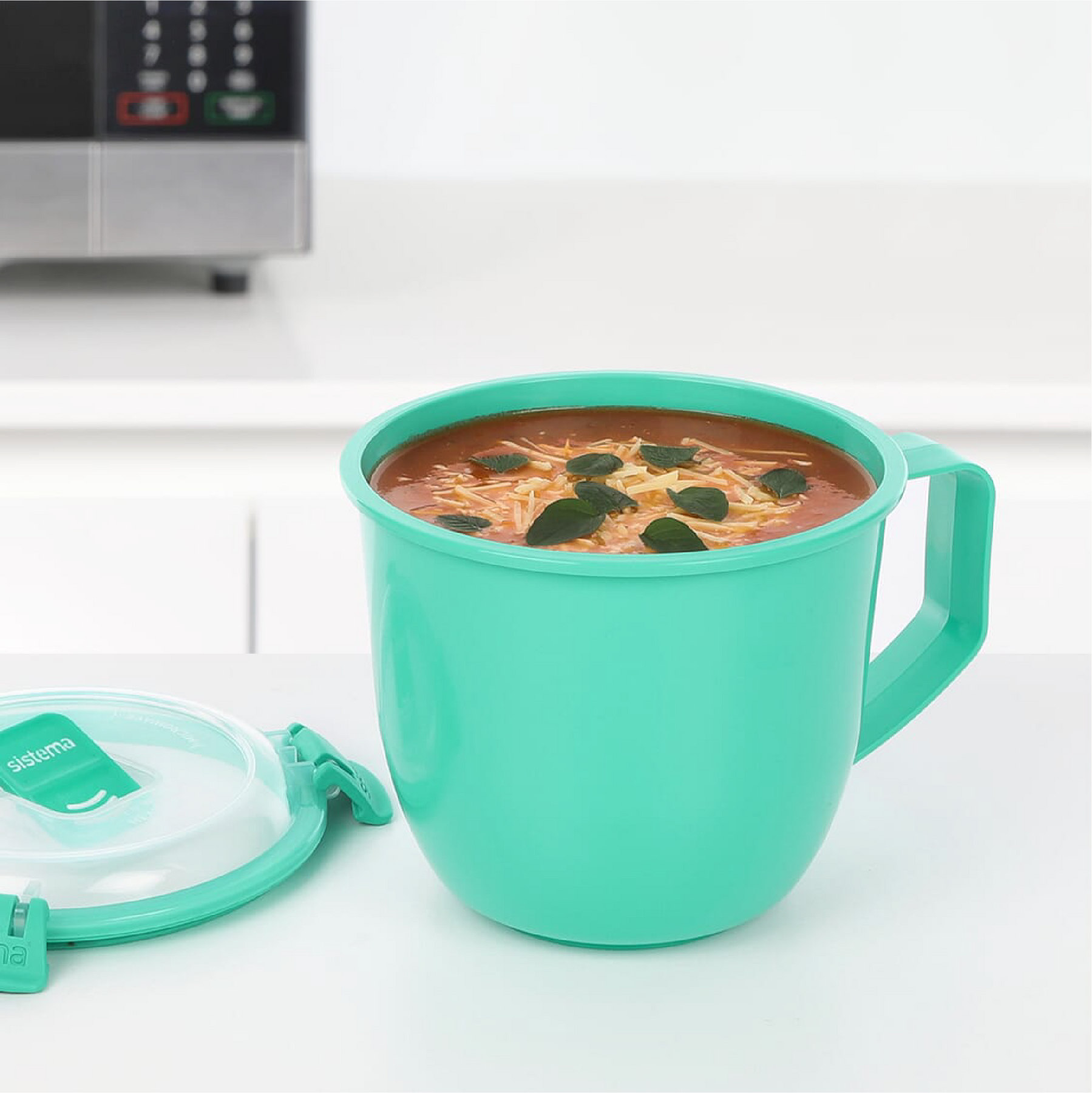 The Sistema® Microwave™ Soup Mug is ideal for soups and stews at the home or office.