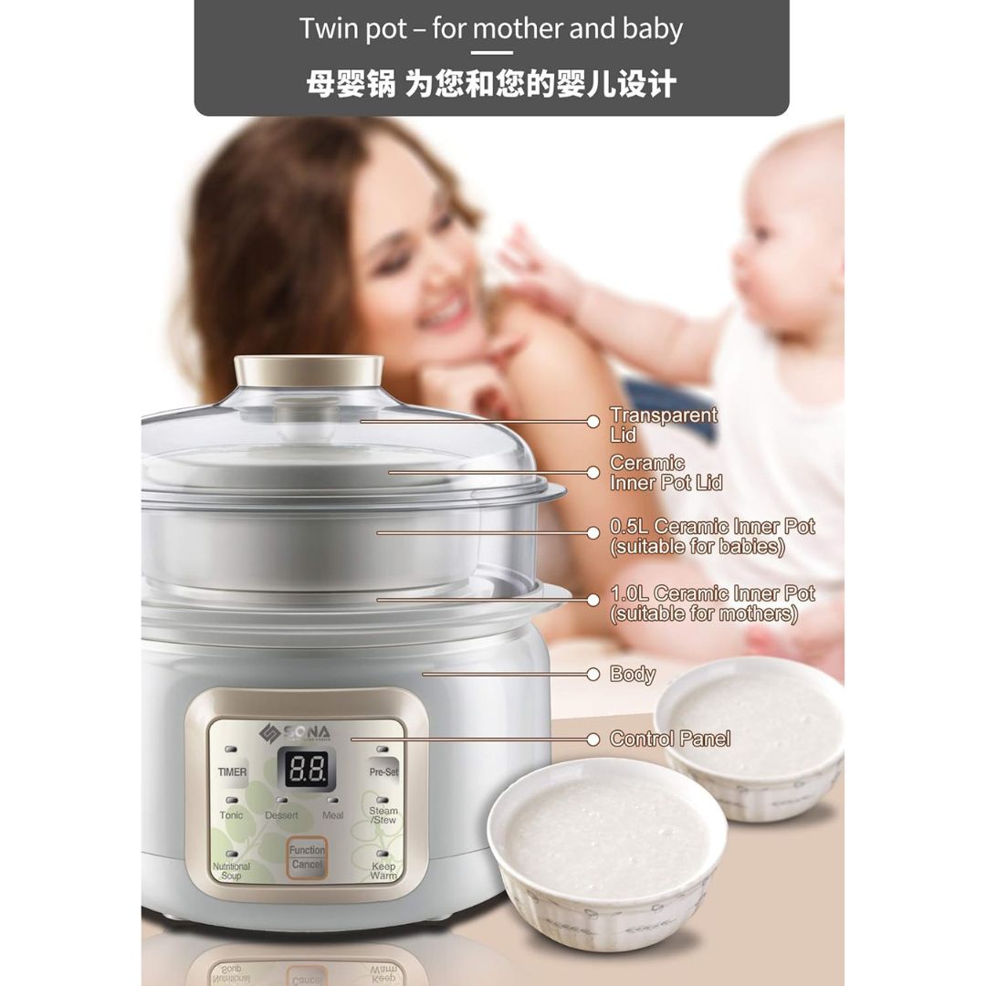 • Twin Pot Cooking Design – for multipurpose (Mother and Child, Set Meal)