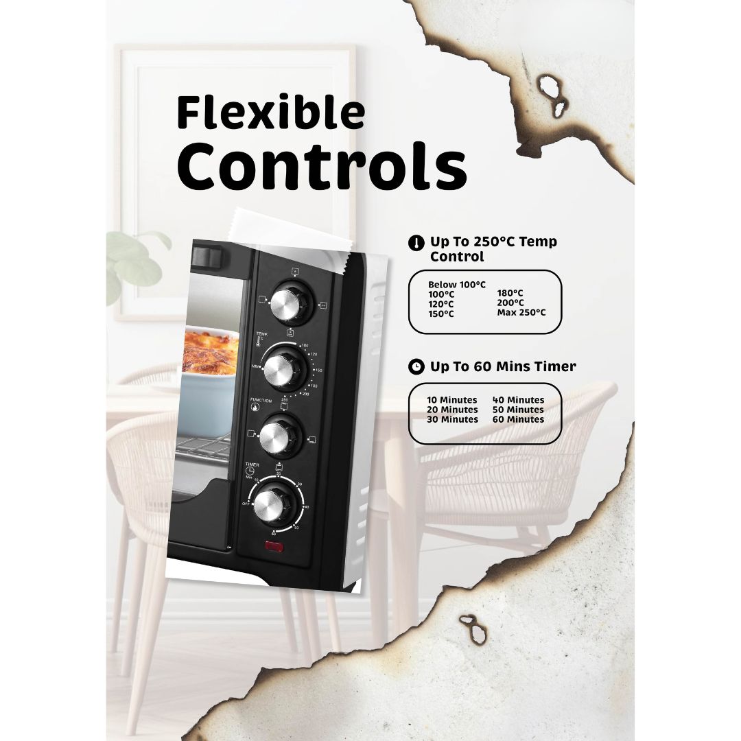 The Sona 42L Electric Oven combines power and versatility for all your cooking needs. With a spacious 42L capacity and 2000W performance, it’s perfect for baking, grilling, roasting, and rotisserie. Features like a convection fan, 4-stage heat control, and motorized rotisserie ensure even results. Comes with essential accessories and built-in safety features for hassle-free cooking.